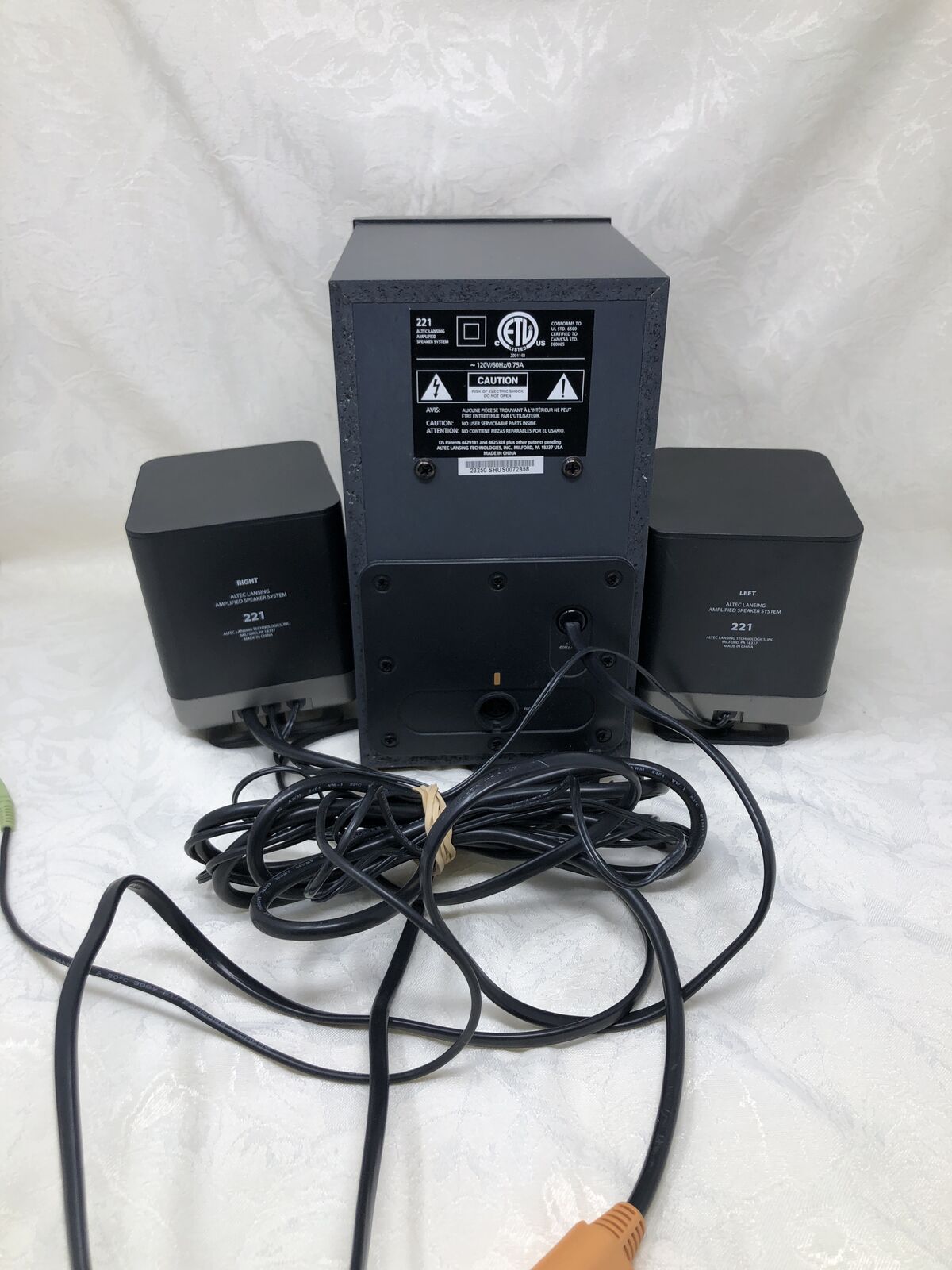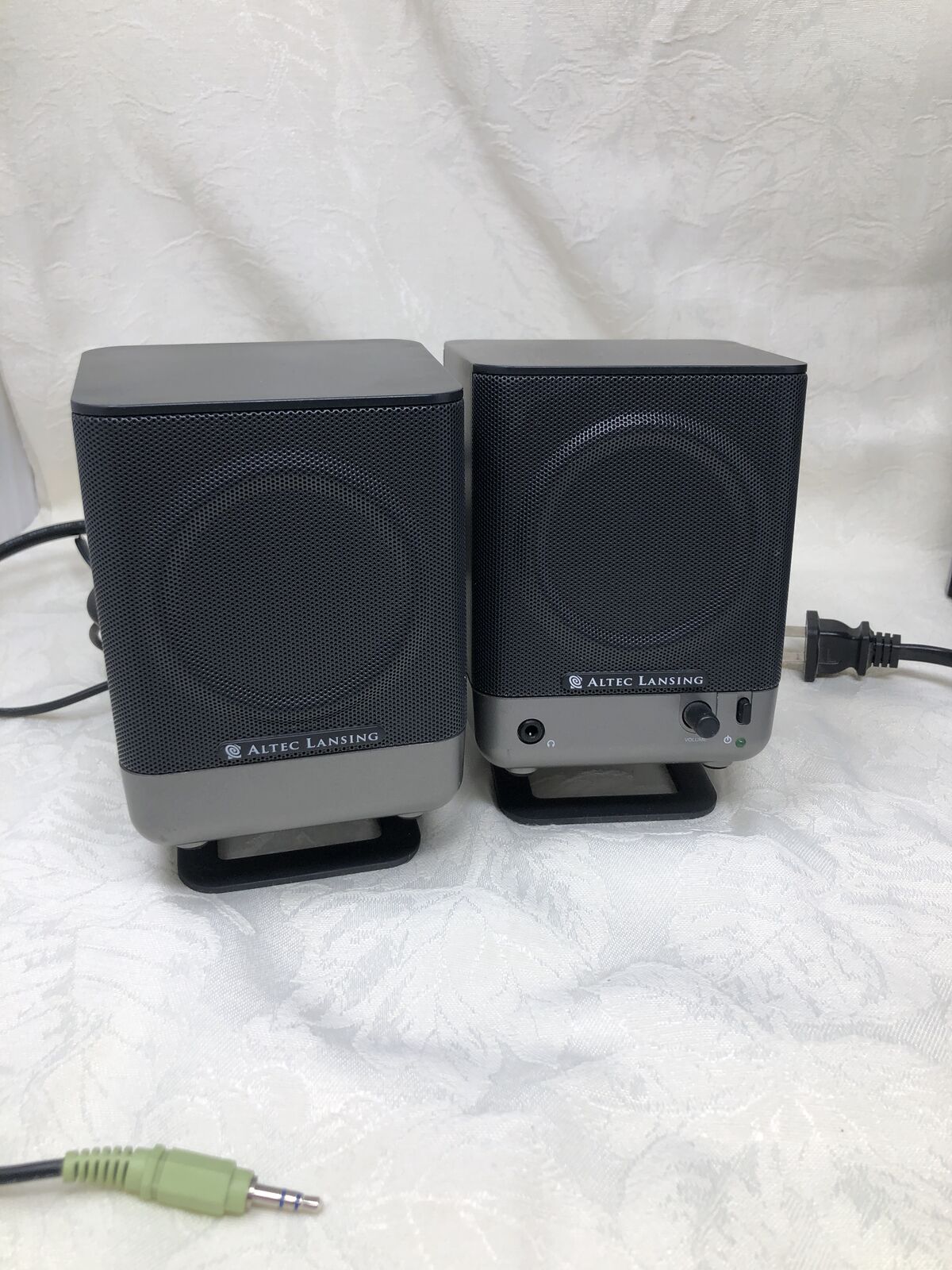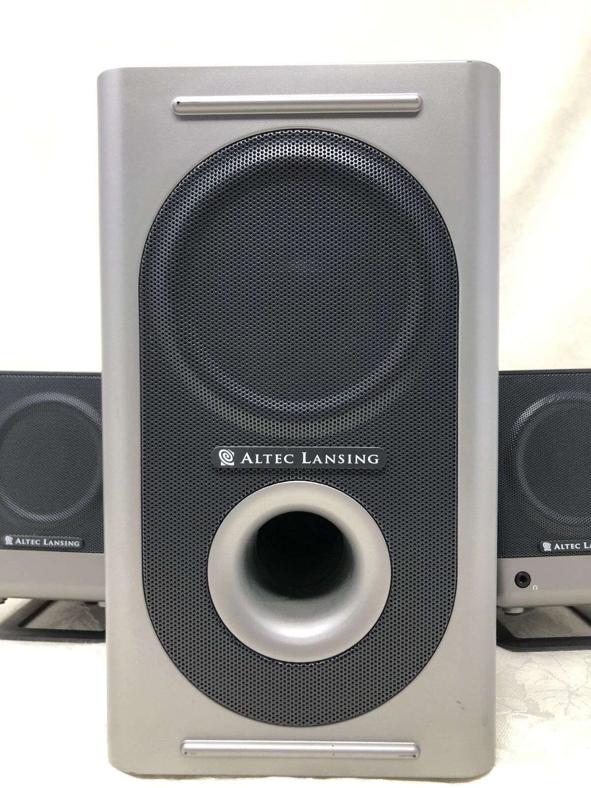 VenmoAltec Lansing set of 3 speakers including (1) subwoofer and (2) satellite speakers. System has been tested and works great, delivering clear sound with solid bass.
