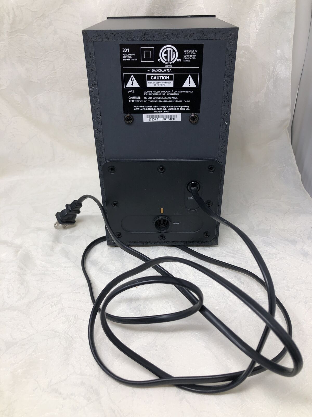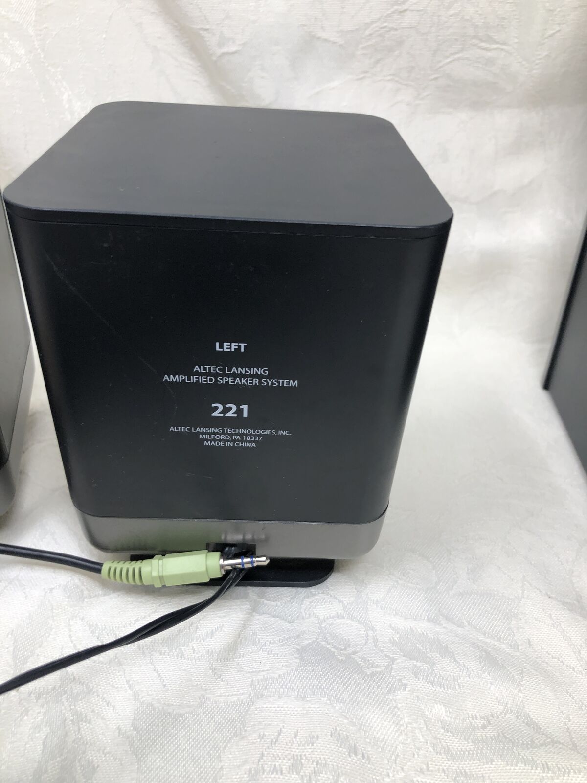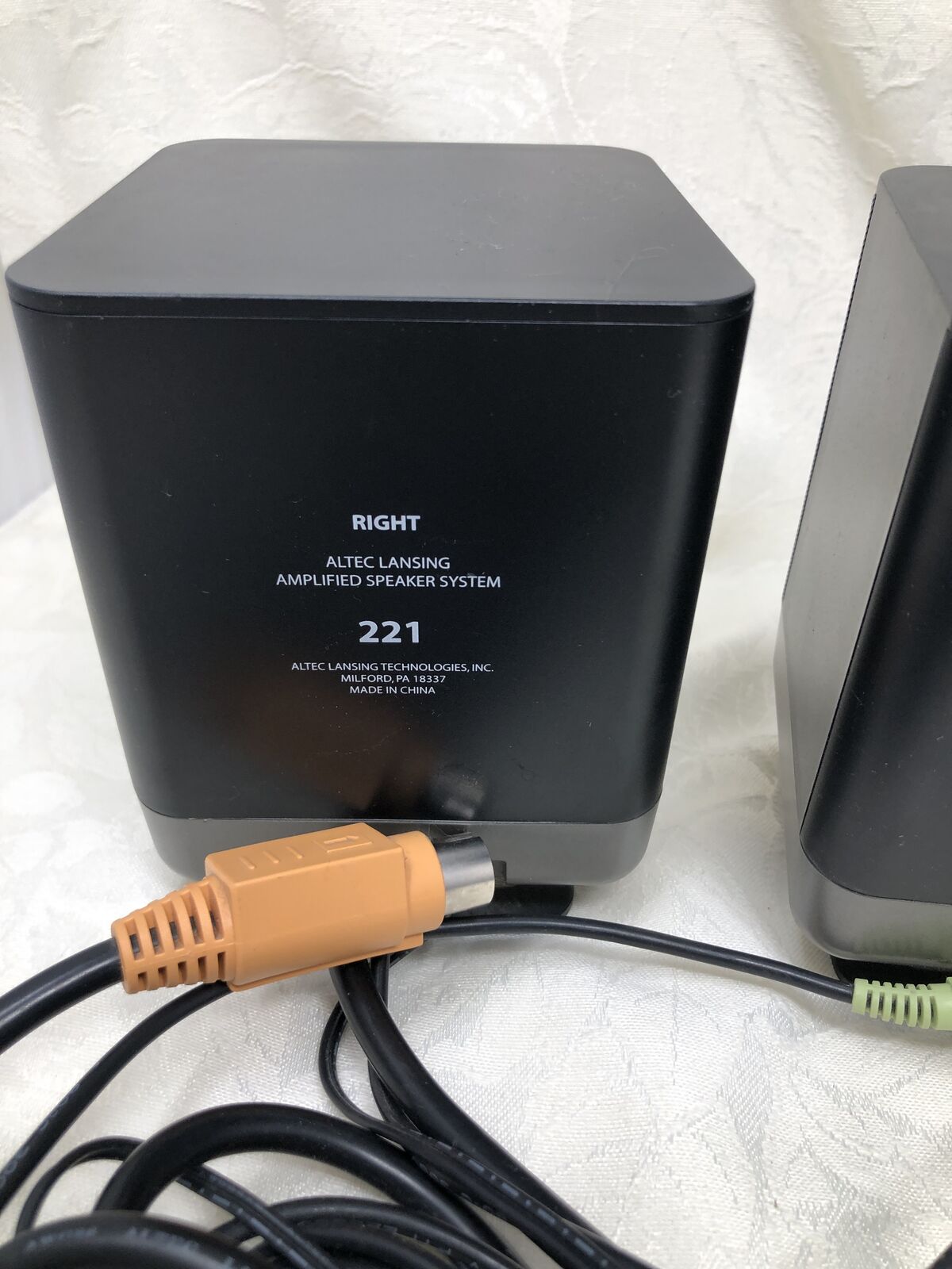 VenmoAltec Lansing set of 3 speakers including (1) subwoofer and (2) satellite speakers. System has been tested and works great, delivering clear sound with solid bass.