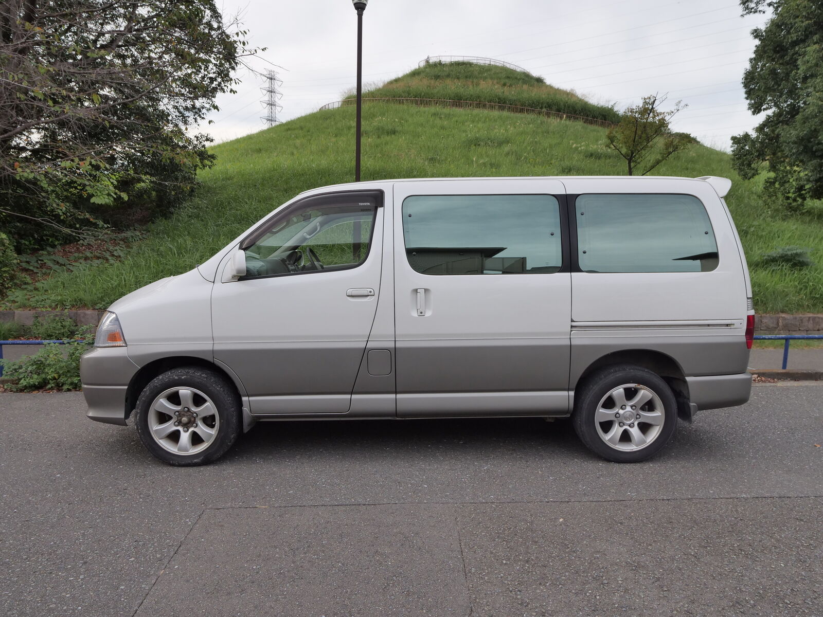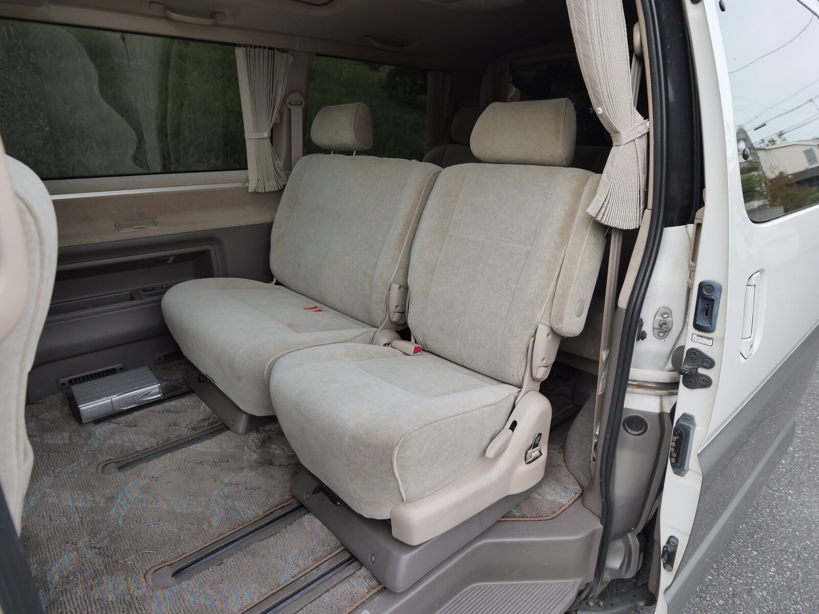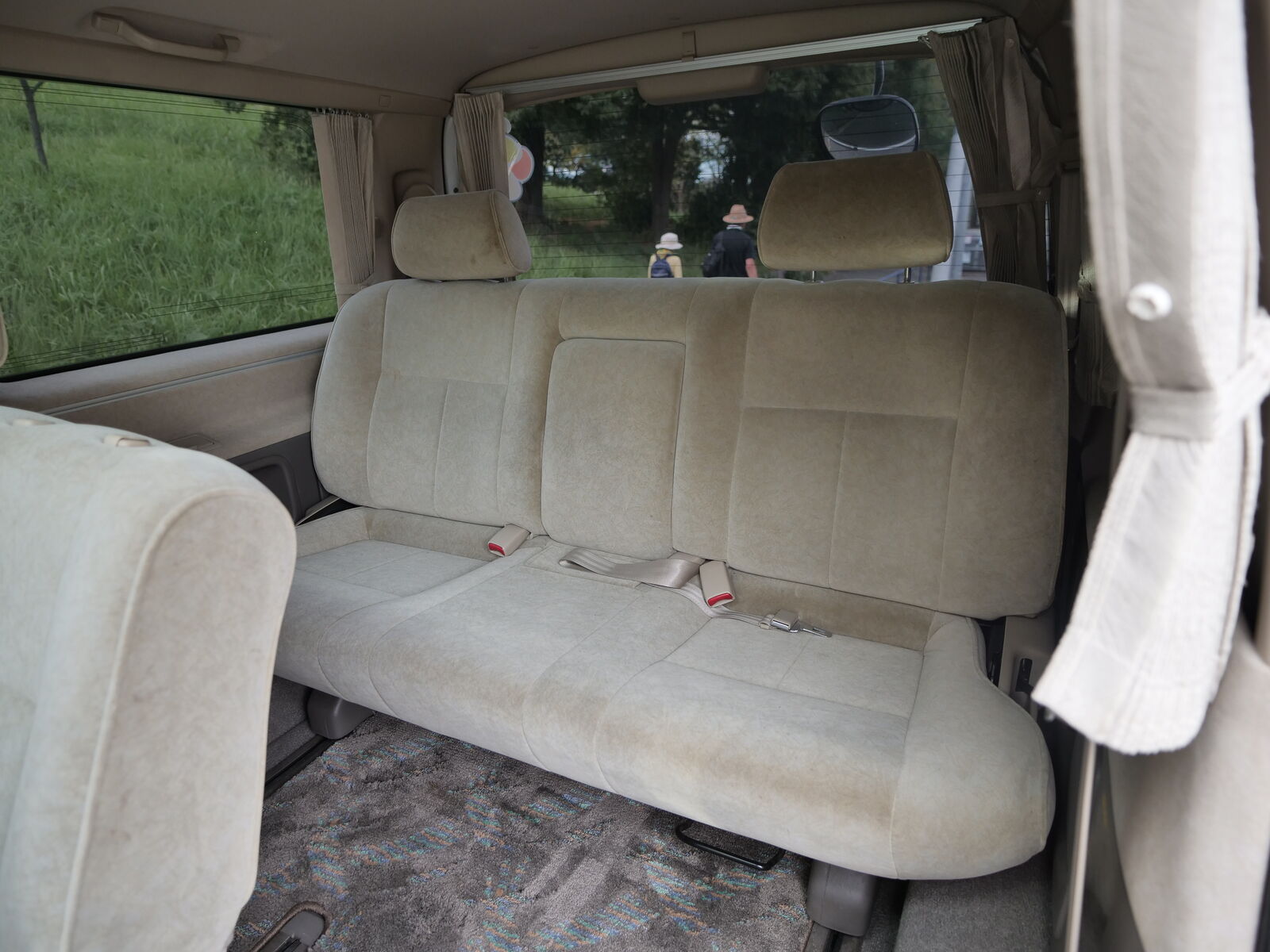 Inside, the Grand Hiace is incredibly versatile. It features three rows of seating, with a middle row that slides and swivels to create a lounge-style seating area or bed. With all seats pushed forward, the cargo area is massive, and removing the second or third row creates an excellent platform for a camper conversion.
