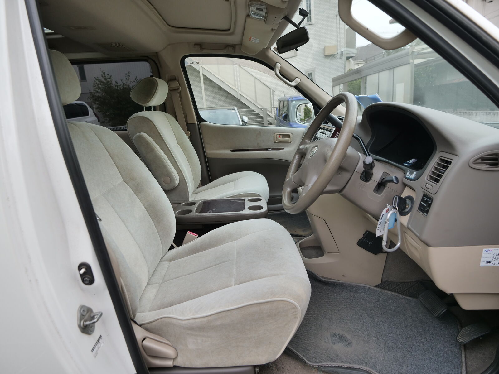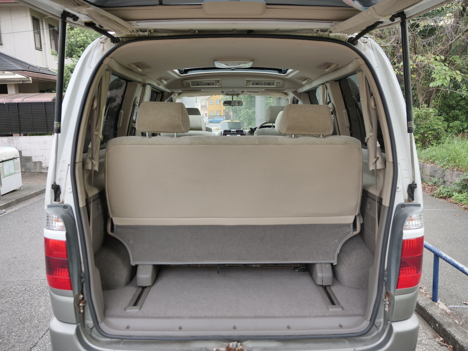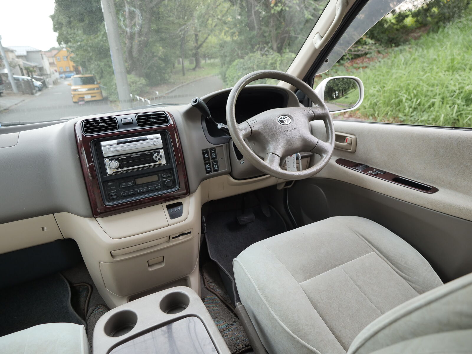 Inside, the Grand Hiace is incredibly versatile. It features three rows of seating, with a middle row that slides and swivels to create a lounge-style seating area or bed. With all seats pushed forward, the cargo area is massive, and removing the second or third row creates an excellent platform for a camper conversion.