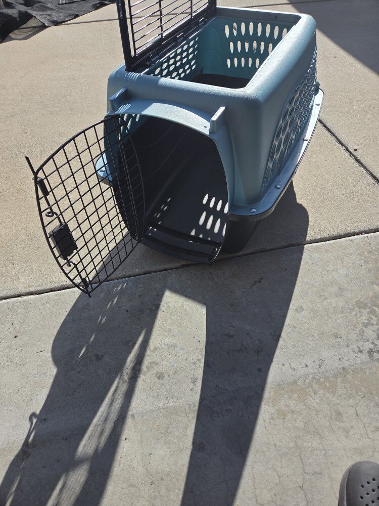 very good condtion nice color cat carrier, dog carrier opens from top and front very convenient