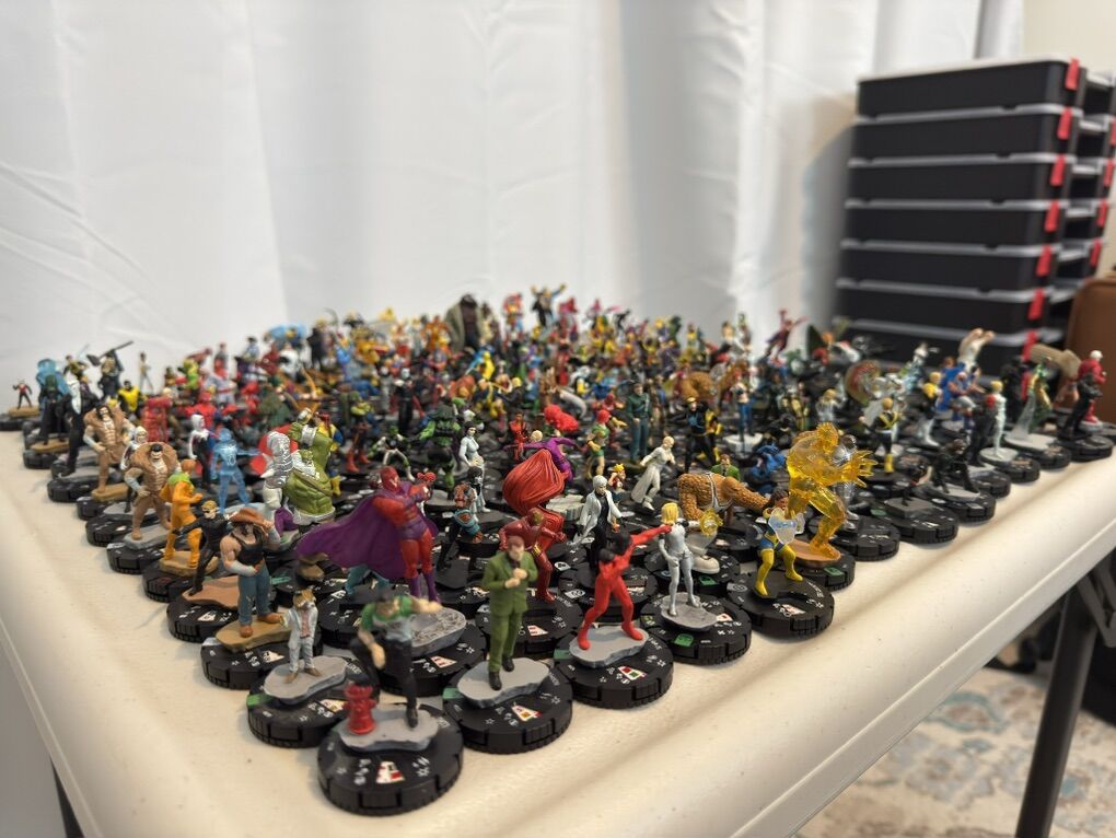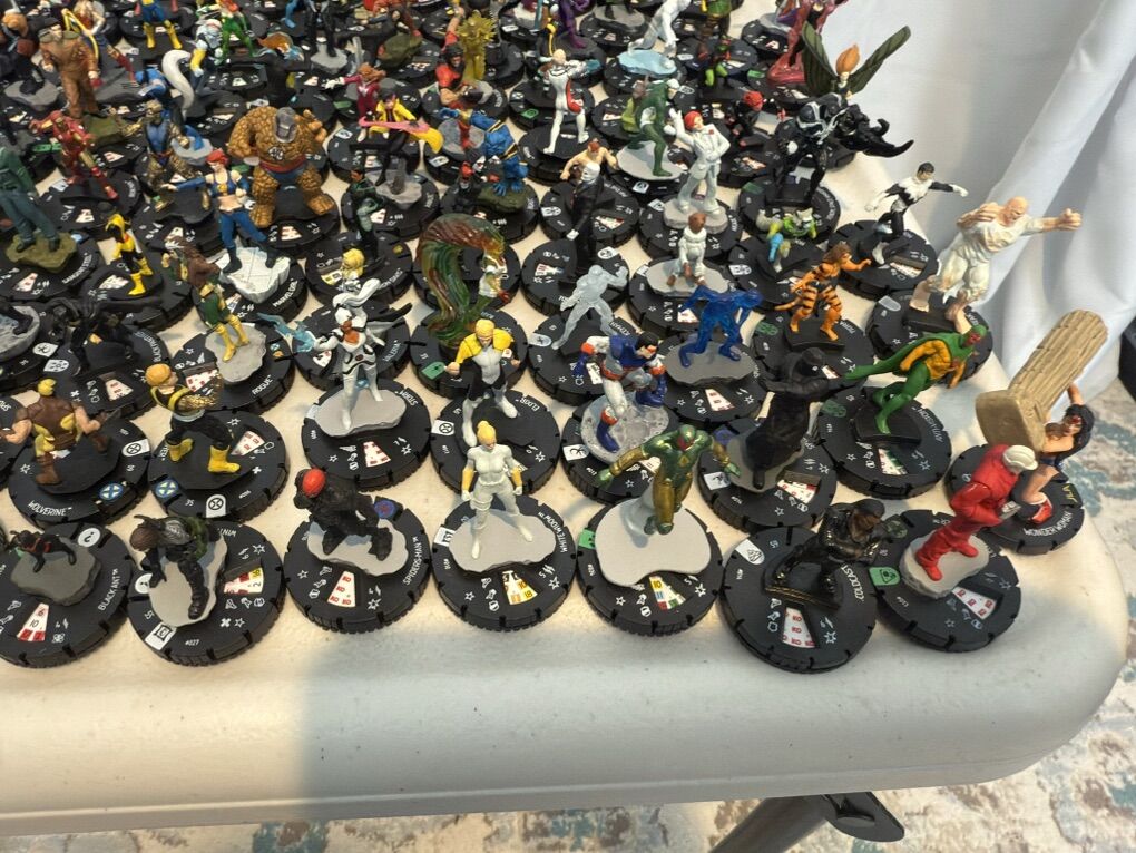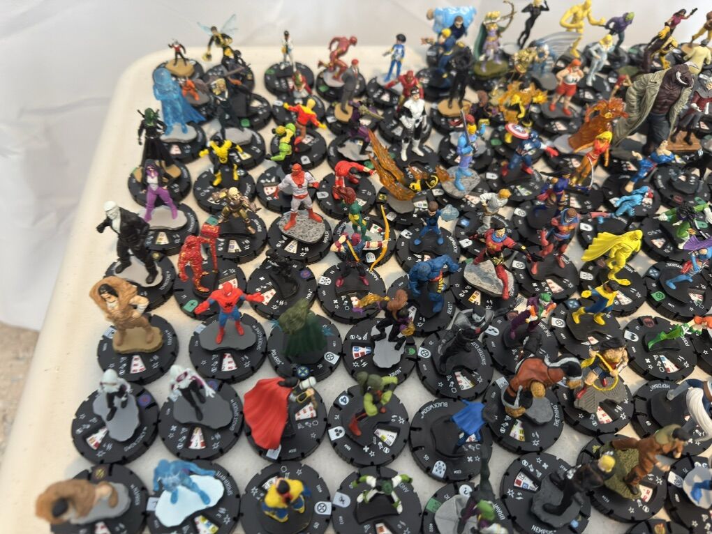 ZelleOver 200 Heroclix figures by WizKids, with no duplicates included. These figures are from the Marvel/DC universe. The lot features a variety of characters from the HeroClix range, offering a bulk collection for fans and collectors of the popular miniatures game or collection. With a mix of characters and variations, this lot provides a diverse range of options for gameplay or display.