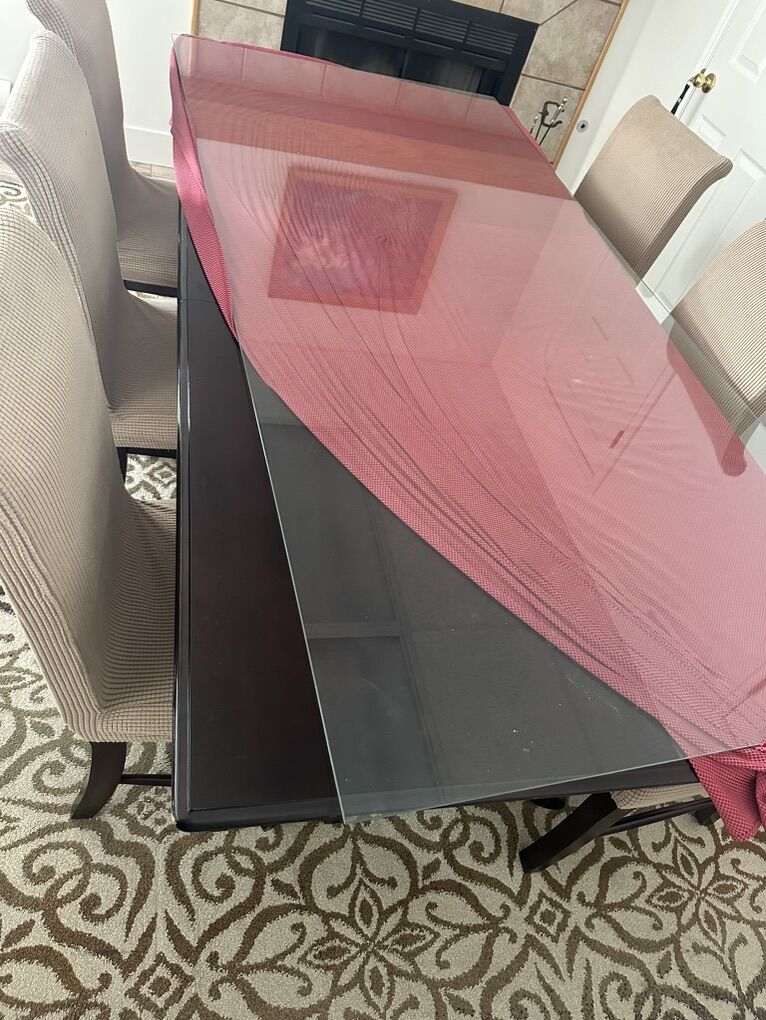 Comes with table, 6 chairs and a glass top for the table. 7’3”x3’4”
