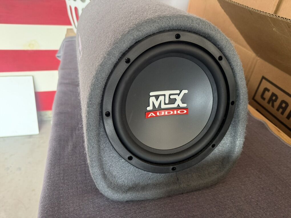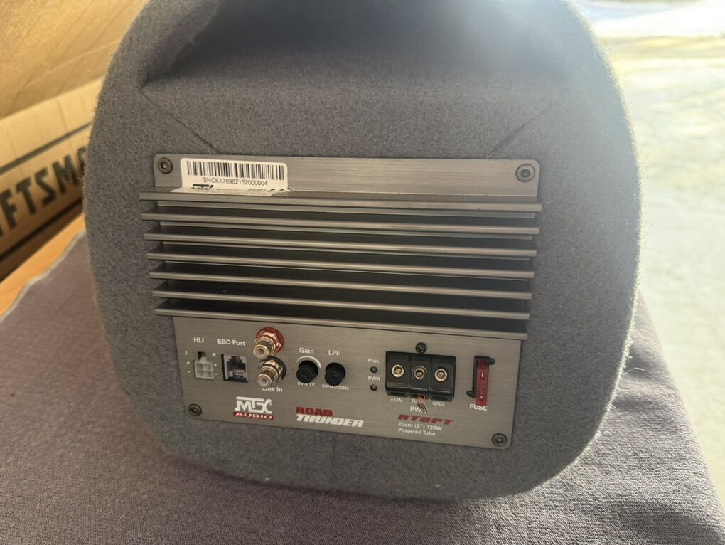MTX Audio RT8PT 8 Inch 240 Watt Car Loaded Universal Powered High Performance Amplified Tube Box Vented Subwoofer Enclosure, RCA Connectivity. Please text 435 4660066 if you have questions