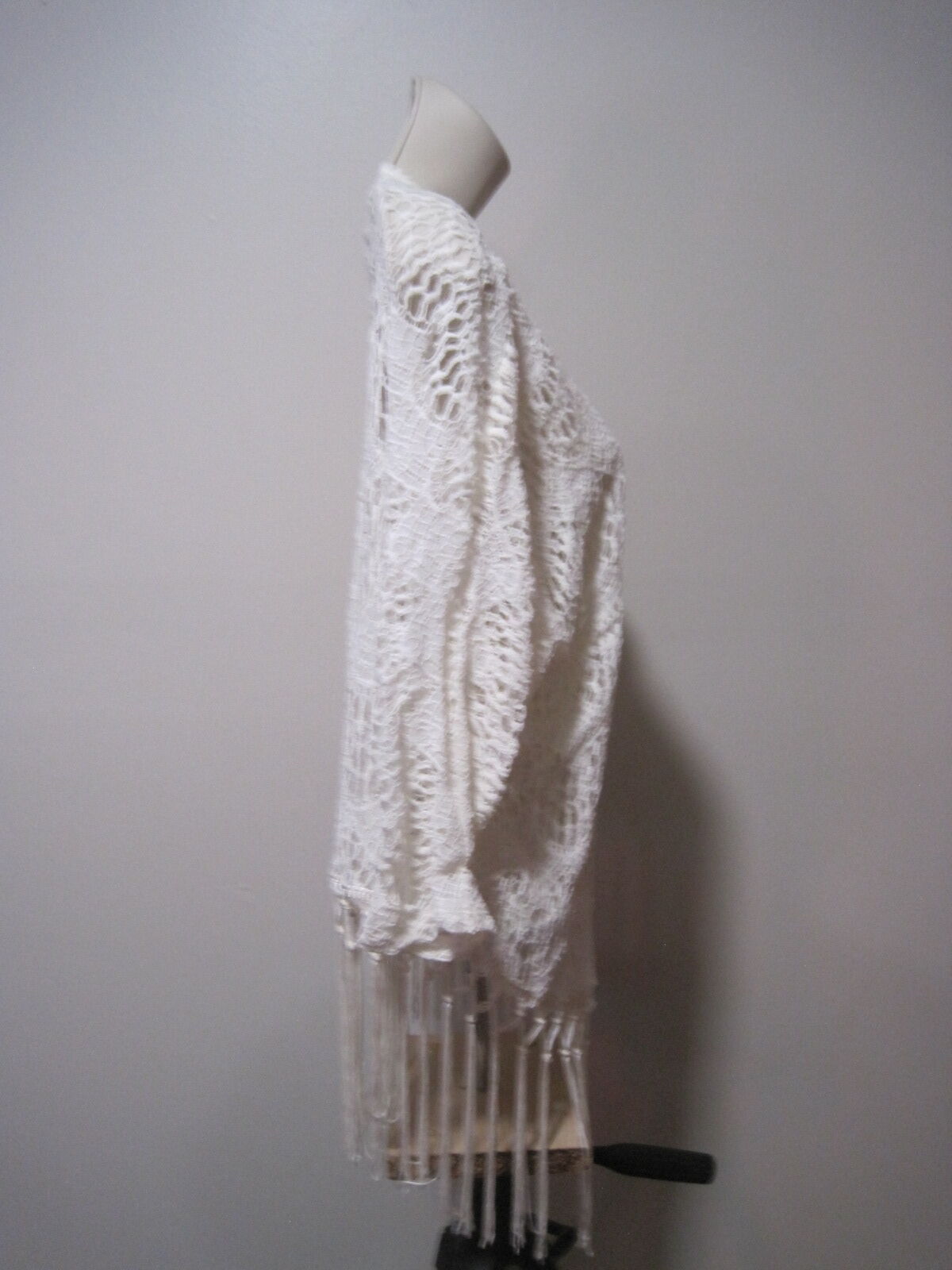 The Blu Planet Boho White Crochet Fringe Kimono Vest for women in size Large is a stylish and unique clothing piece that combines boho and kimono styles. Made from a blend of cotton and nylon, this vest is perfect for those looking for a comfortable and breathable option. The white color and crochet fringe details add a touch of elegance, making it a versatile piece that can be dressed up or down. Designed by Blu Planet, this vest is crafted in the United States, showcasing a blend of traditional and modern styles.