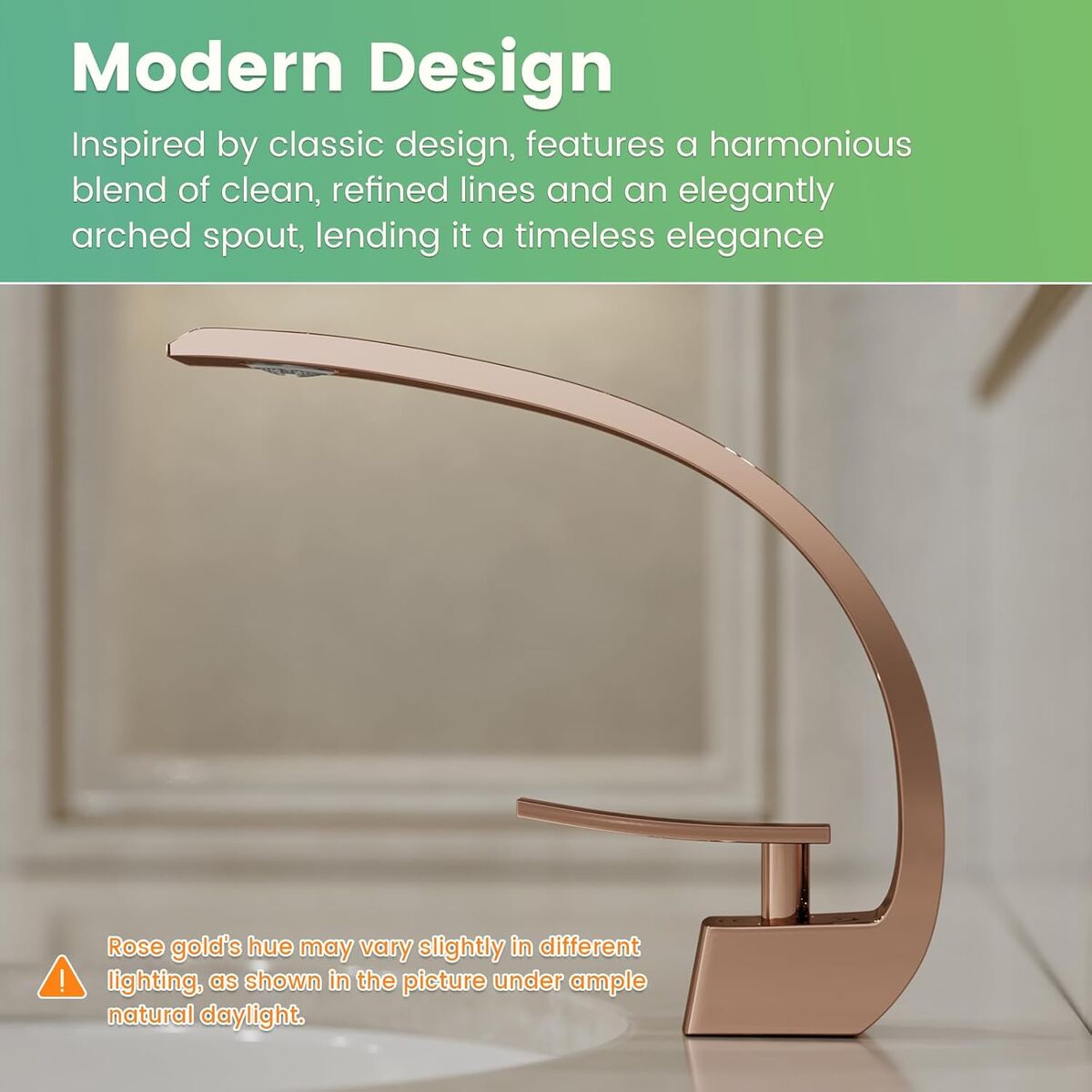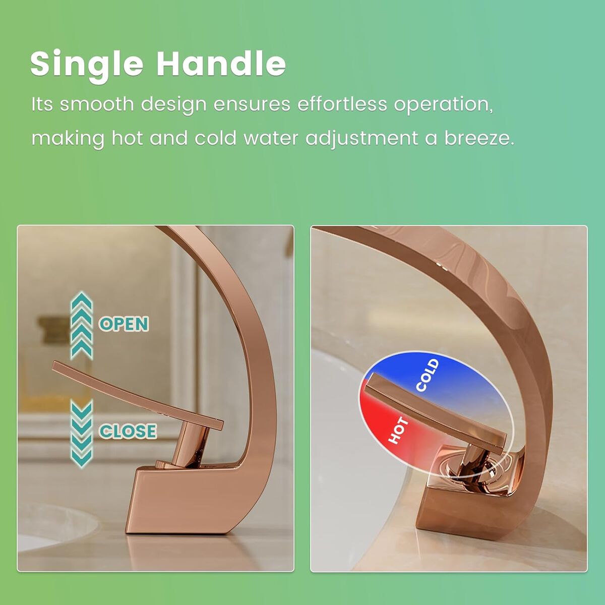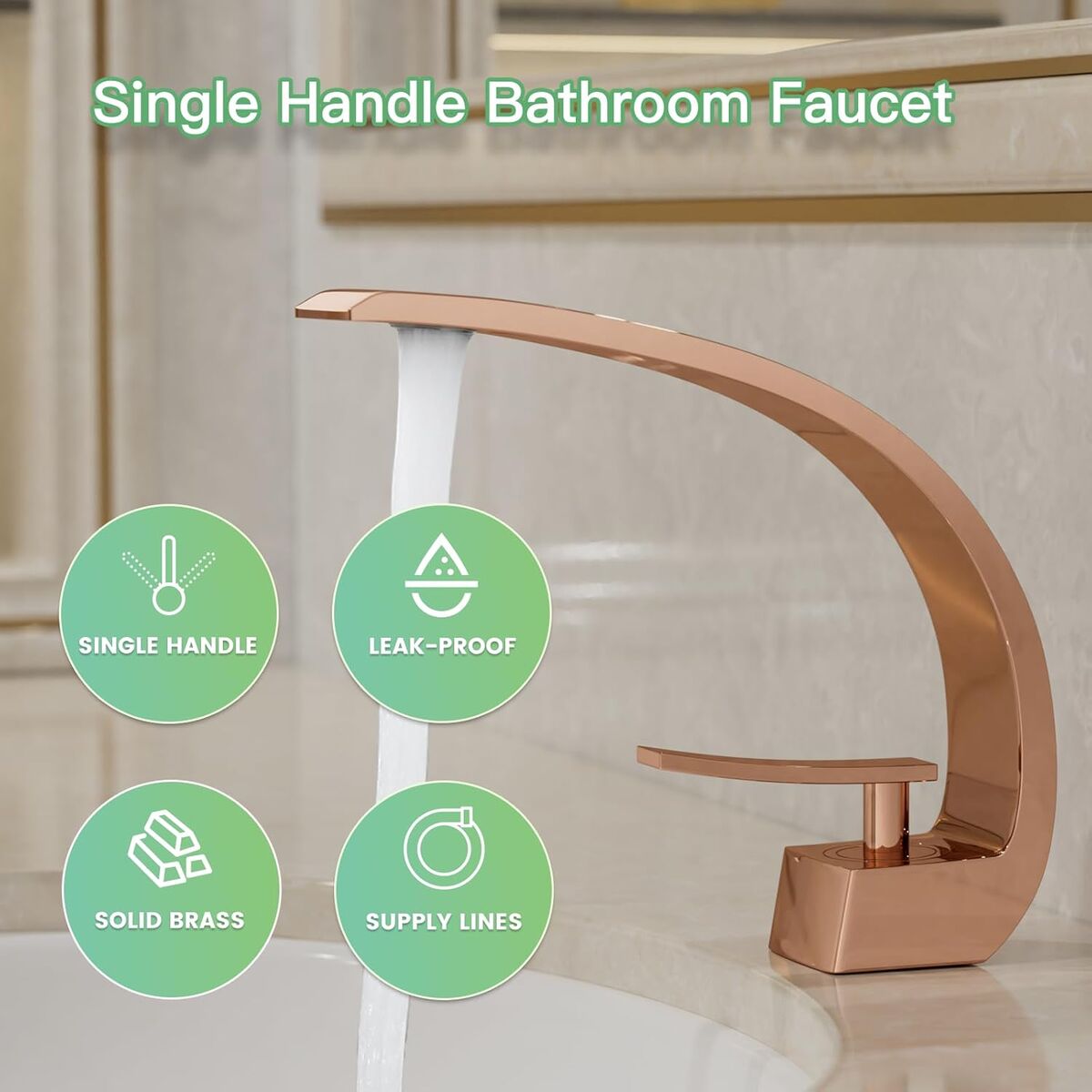 ApplePayRose Gold Modern Bathroom Sink Faucet, 1 Hole Single Handle Deck Mount Vanity Mixer Tap, Solid Brass Faucet with Deck Plate for Basin Sink