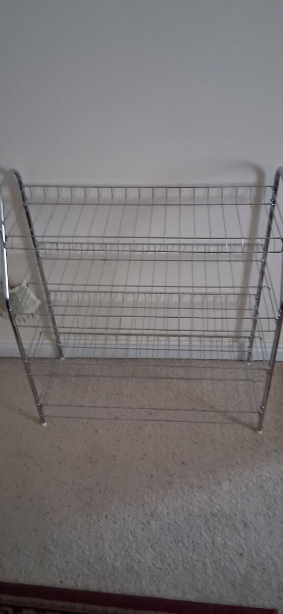 Wire chrome shoes rack, used but in excellent condition for $10.