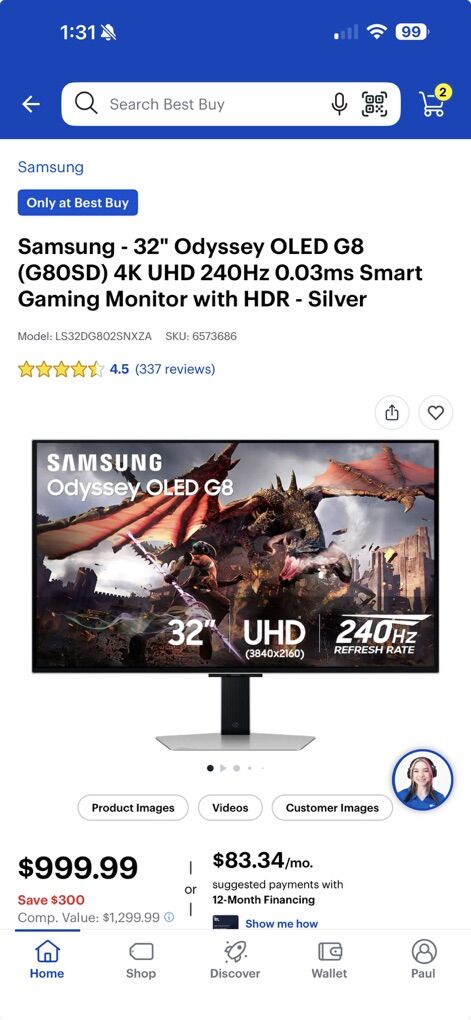 VenmoSamsung - 32 Odyssey OLED G8 (G8OSD) 4K UHD 240Hz 0.03ms Smart Gaming Monitor with HDR - Silver Purchased in december & only used a handful of times. Just really don’t have the time for gaming anymore. Retails for $1,000 currently! $800 OBO need gone ASAP