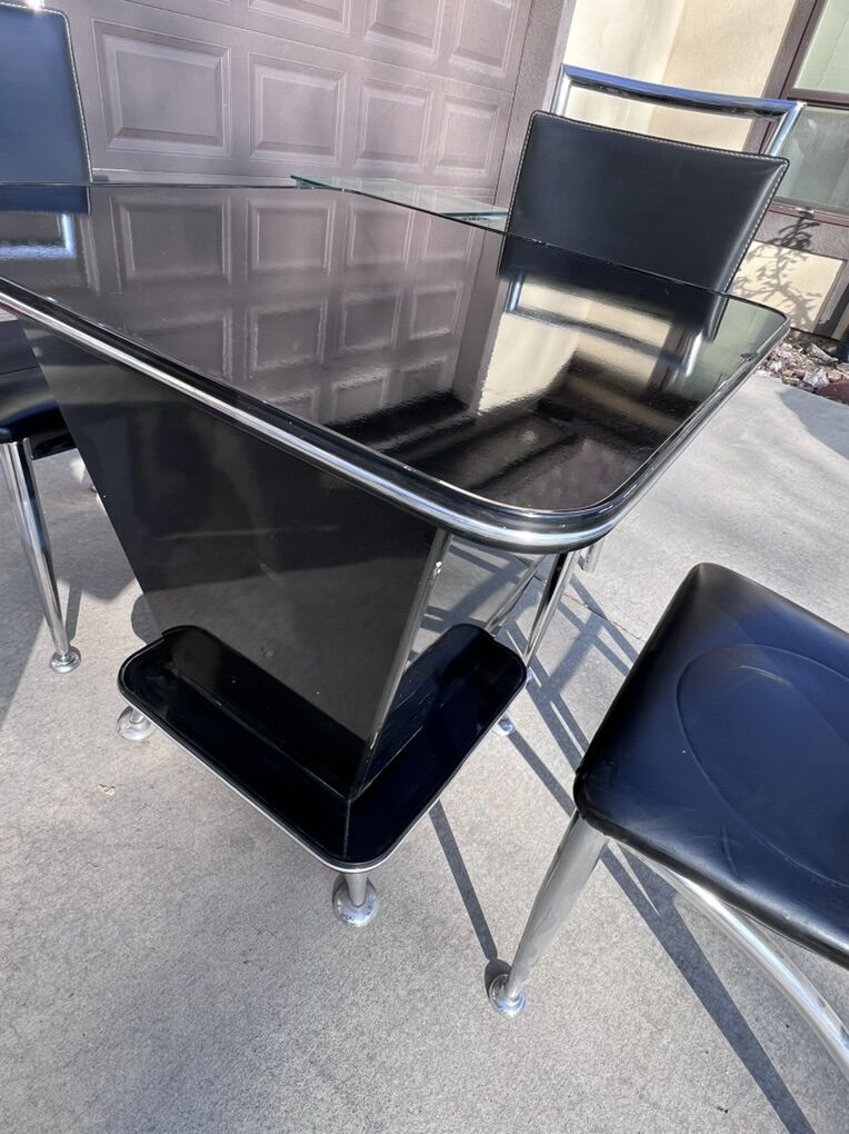 VenmoNice modern table and chairs. Small chip on table surface, see pics. Prices to sell quick. Let me know if you have any questions.
