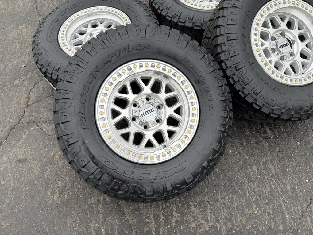 ApplePayBrand new package! 17x8.5 KMC KM549 GRS wheels 00et offset. Mounted and balanced on 285/70r17 Nitto Ridge Grapplers. 6x5.5 bolt pattern (6x139.7). These fit Chevrolet Silverado 1500 GMC Sierra yukon tahoe Nissan Titan and Toyota Tacoma. Huge savings! Call or txt 435-760-1194