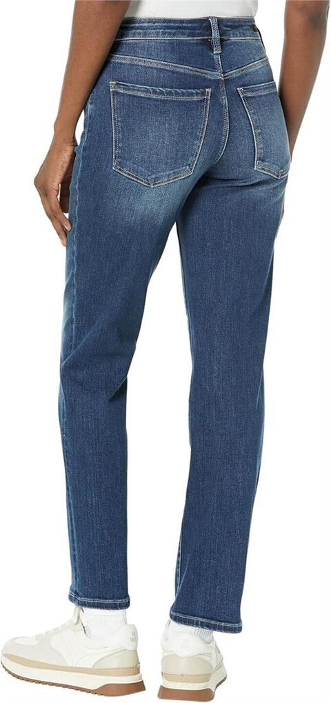 Stylish straight-leg jeans with exposed button fly in a dark Marengo wash. Soft stretch denim for comfort and a flattering everyday fit. Great for casual or dressed-up looks. Size 4/27
