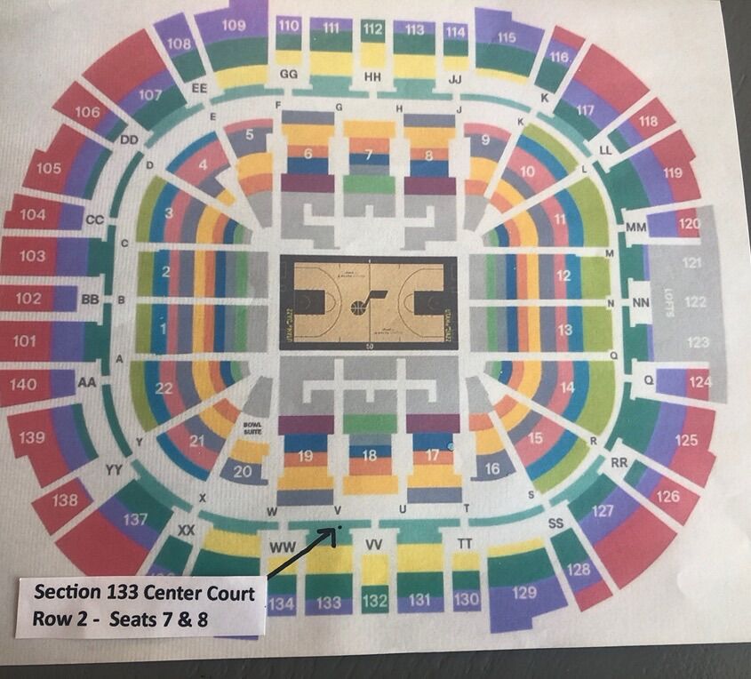 VenmoJazz vs Kings Center Court - Row 2 February 11th Wed 7pm Section 133, Row 2, Seats 5&6 $65 Each- no fees Row 2 better than row 1 no glass or bars in front of seats. EASY ACCESS to seats, 5 steps down from concourse. No seats behind our seats can stand anytime when needed. Seats are right above the Ultra Expensive Suites at a much lower price! Tickets are sent through SeatGeek the partner with the Utah Jazz Payments accepted through Venmo. Go Jazz! Jazz Season Ticket Holder Let me know if you’re interested in other games!