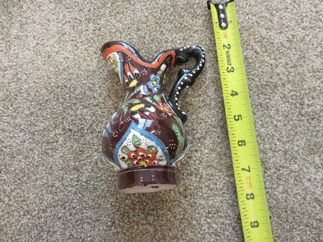 I paid the equivalent of $36.00 for this; so my asking price of $10.00 for such an ornate handmade pitcher seems like a very fair price. The artist told me that he had almost 4 hours of labor making this.