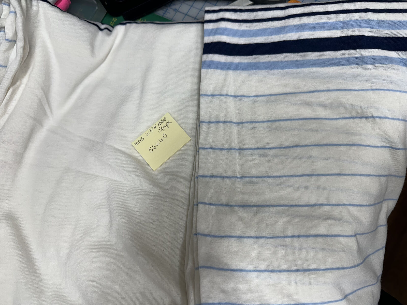 4 - $12 - 1 1/2 yd x 60 - Men's White/Blue Stripe