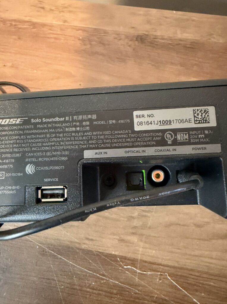 ApplePayBose solo 2 soundbar in good working condition it can be connected via Bluetooth,optical and aux in comes with remote control asking 110 located in sandy thanks!
