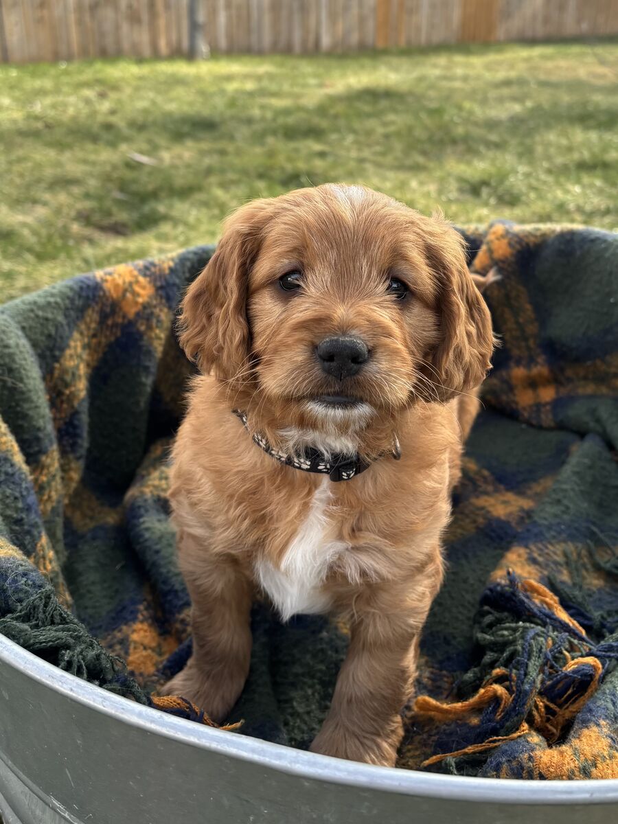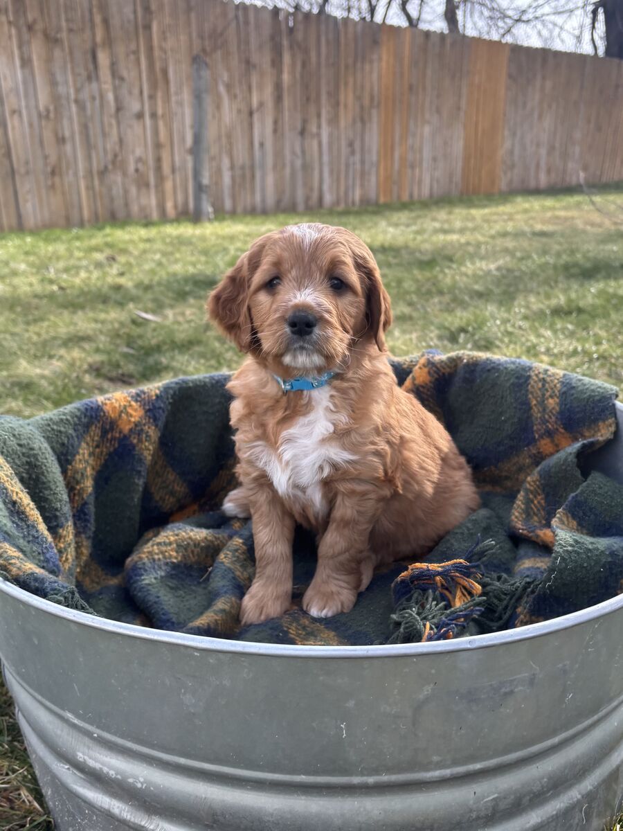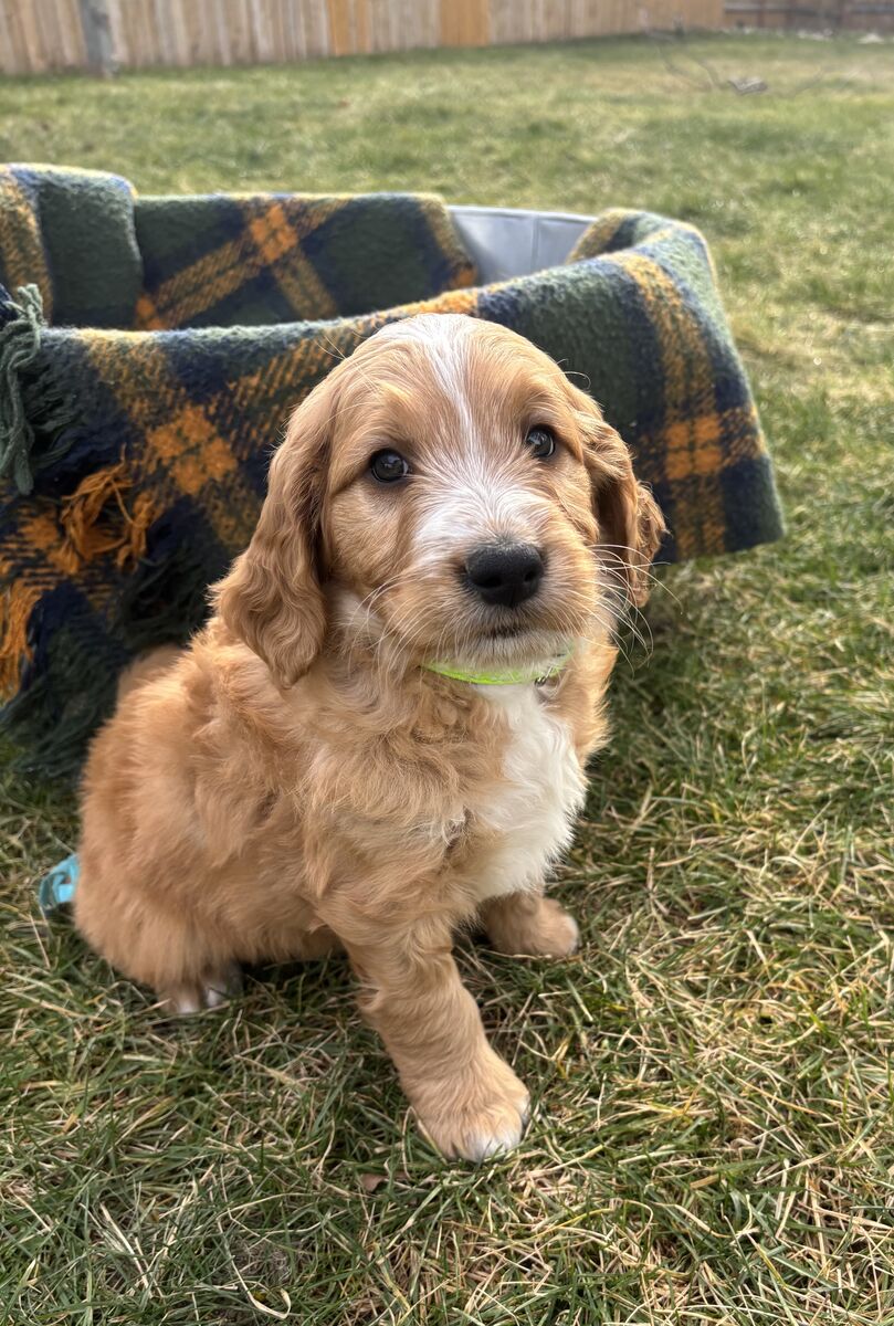 VenmoF1 small–medium Goldendoodle puppies! Expected adult size is 30–45 lbs. Parents are genetically tested and AKC registered, and puppies are well-socialized, working on potty training, dewormed, and will go home with first shots! Ready to go home around 2/10!