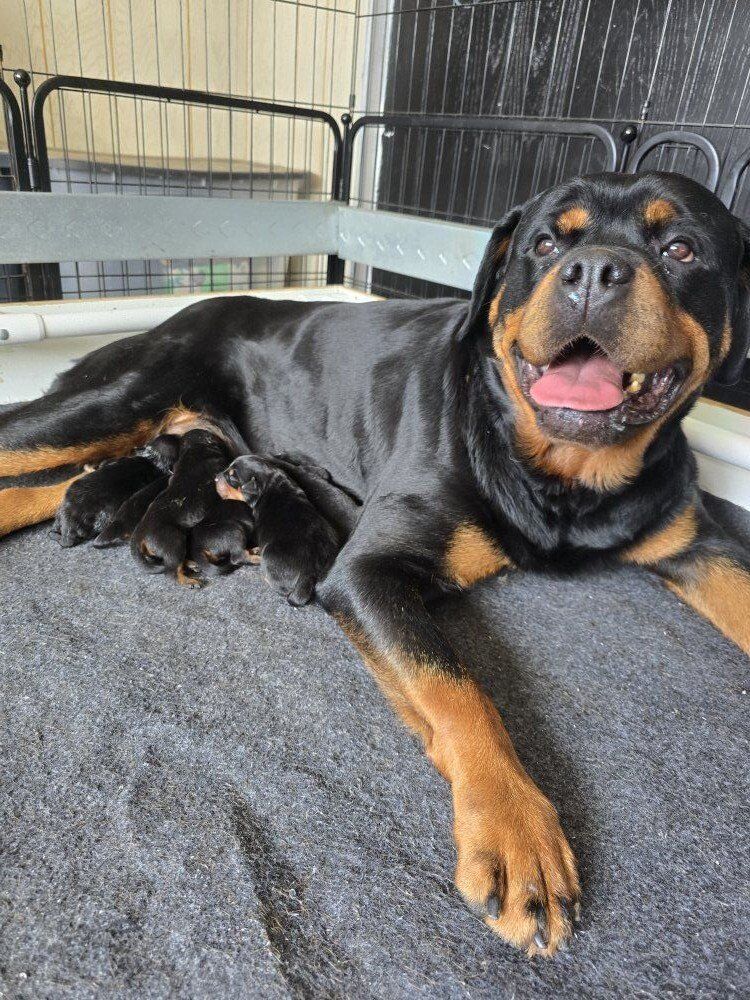 Snubnose Rottweilers has the time to properly breed, feed, train, clean, and whelp puppies. We don't sit in a office day and breed by night. Breeding is not a hobby or our ego. Rottweilers is all we do 24-7. We are also is the only Rottweiler kennel in the area that adheres to AKC random inspections, maintains a city kennel license (background check required), City kennel license, county kennel permit, state business license, and a state sales tax license. Snubnose Rottweilers also owns 5 dogs that are now work titled, obedience tested, and have breed standard/ temperament tests. Let me reiterate, we own dogs of breeding stock that have their work titles (IGP), obedience tests(BH), and breed standard tests (ZTP), and my program has produced two conformation show dogs, and breed standard test( Parkers Apollo V-2 off Snubnose Rottweilers Xolotl and Vika and Queen Parkers Zara V-2 and BSE off Irbis Berrimor hause and Art Guard's Onksunamun see photos) in the last two sieger shows in America. We also have the trust of the top breeders in the country. We mated our Natan vom hause Neubrand to Vom Haus Wolfes Lady Sparkles aka Rosy, the winner of the best in show. Snubnose Rottweilers continues to train work dogs for protection where exercise, obedience, stamina, temperament and diet is crucial to their success. We work hand in hand with a dietician, and listen to a qualified veterinarian to feed a homemade high protein diet daily, with absolutely no kibble!!!