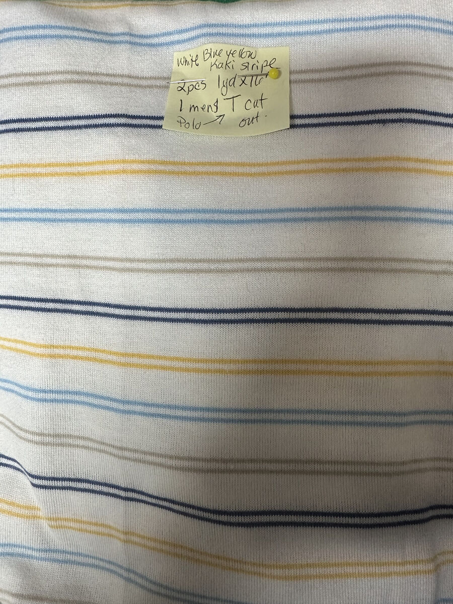 26 - $8 - 1 yd x 60" - White w/Yellow, Blue, Khaki, Navy double stripes 2 pieces incl. a cut out adult T body