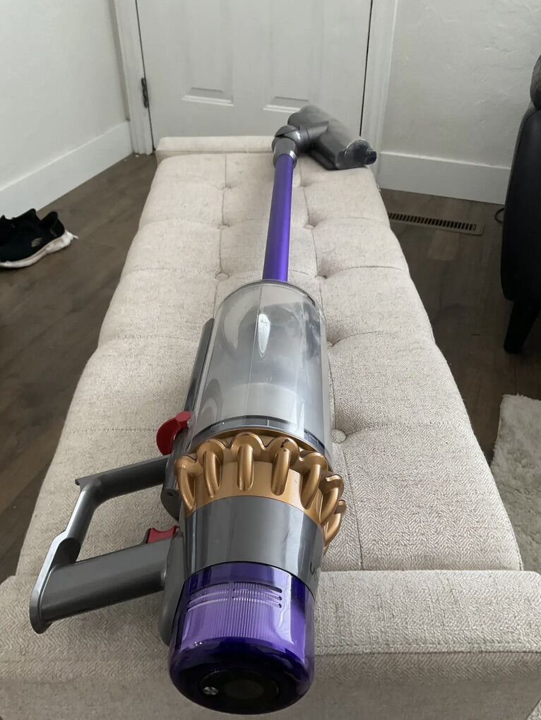 VenmoDyson outsize vacuum Dyson power for large-home deep cleans without the cord. 90% more power, 60 minutes of run time. This comes with what’s shown here plus the charger. Does not come with wall mount or additional accessories. Retails for $500 new. This is used with a new Dyson battery and it runs great!
