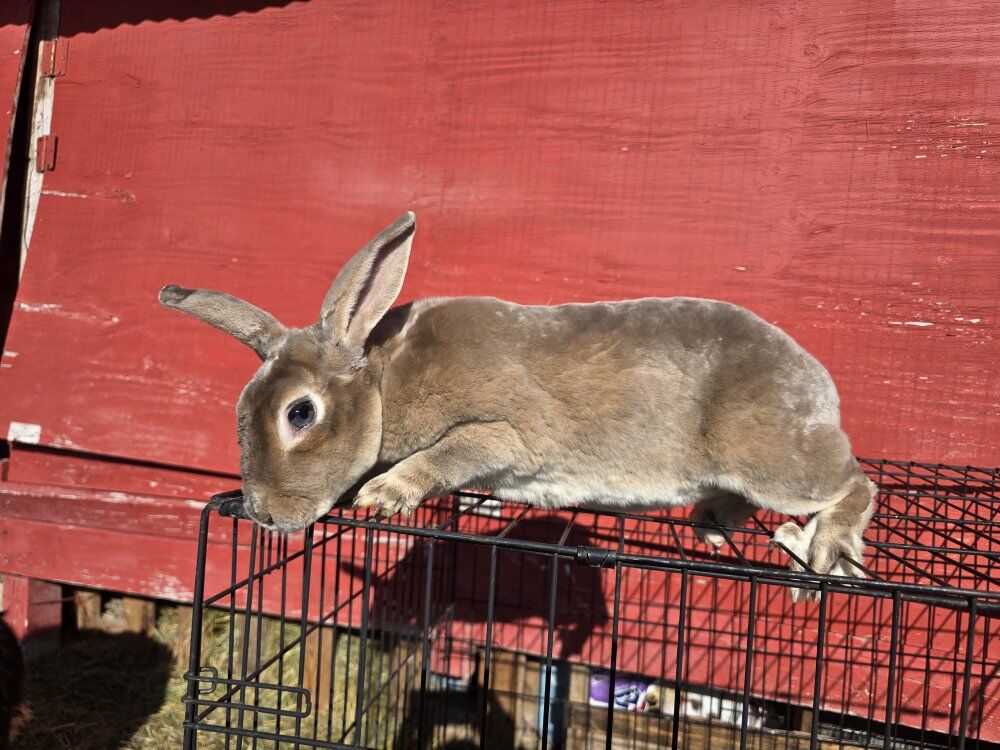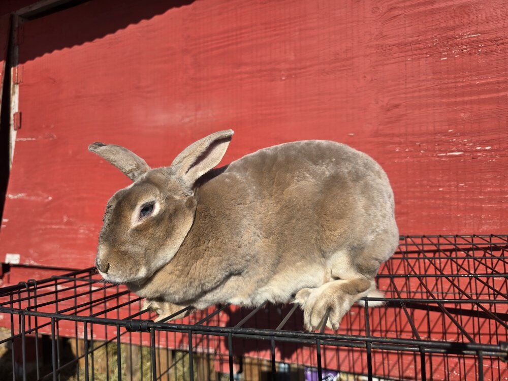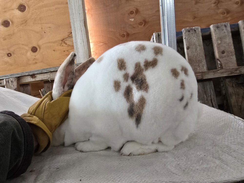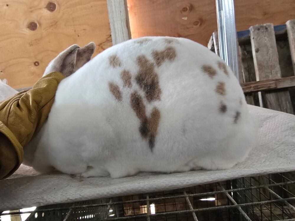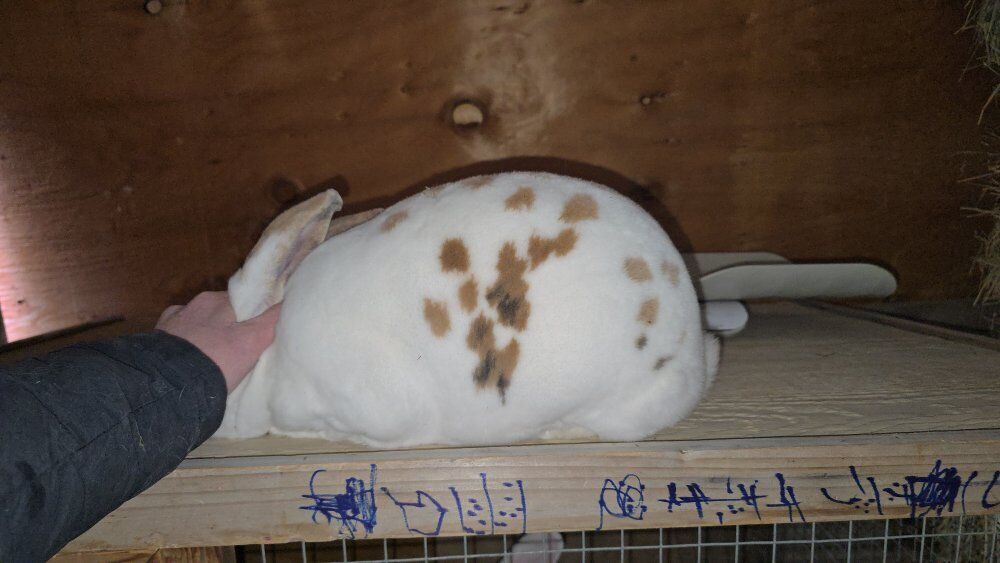 we named him Butterlicious he is pedigreed and comes with it asking $75 for him comes from 5 starr rabbittry he 7 months old 7 lbs he has sired 5 litters and beautiful babies and big litters ! so you shouldn't be disappointed!