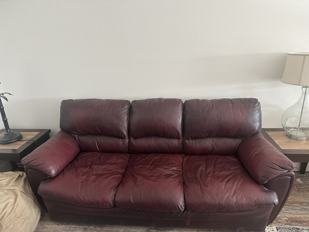 ApplePaySelling two matching red leather couches, each approximately 8 feet long. Great opportunity to buy as a set or individually.