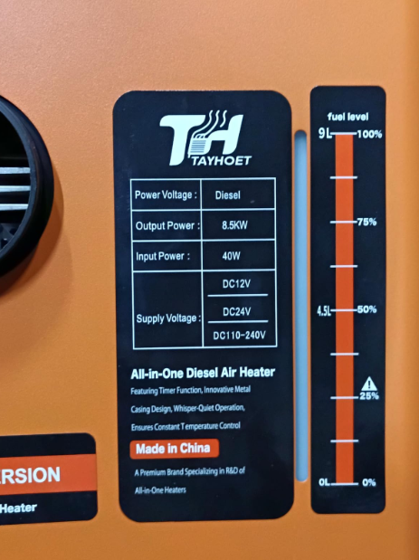ZelleHeats Up Fast – Get instant heat without complicated installation. This 8kW diesel heater starts working right away — It quickly warms up spaces as large as 270 sq ft, making it the perfect heating solution for your garage, workshop, job site, or outdoor gatherings. Easily adjust your comfort with the wide-range temperature control (47°F–97°F / 8°C–36°C), so you stay cozy exactly the way you like. Long press the up button for 6 seconds to switch the temperature display mode.