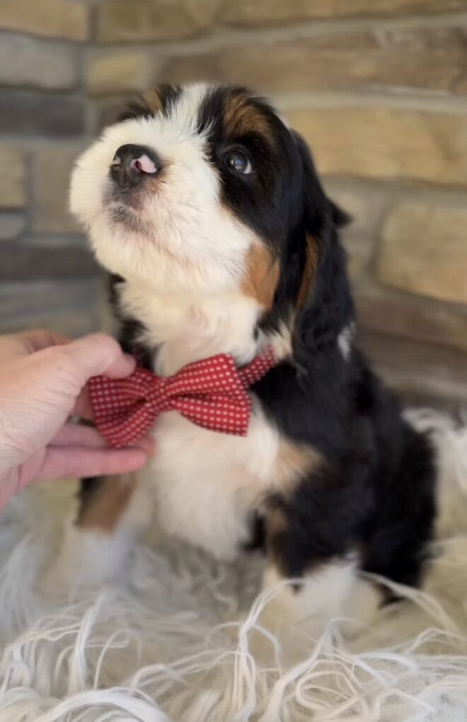 Their mama is a beautiful Bernese Mountain Dog, giving them that classic Bernese sweetness, loyalty, and calm, loving temperament. Their dad is a multigenerational Bernedoodle, which brings in those soft, allergy-friendly coats and the highly intelligent, people-focused personalities Bernedoodles are known for.