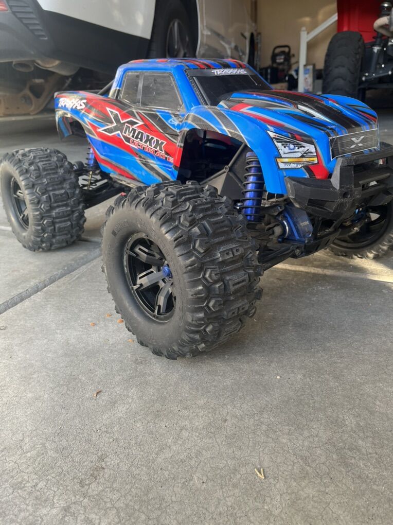 Selling my Newest version Traxxas Xmaxx ULTIMATE with only a few runs in it. This Thing is Ready to Run with the Belted tires and all the Aluminum parts from Factory. Included in this bundle is 2 4s 6700mah Traxxas batteries with no puffing on them and only a few runs on them, Dual Live Traxxas Charger, and Traxxas Link on the Remote to check Motor Temperatures and Speed. This setup new cost around 2k. Looking to get 1100 OBO or Possibly open to trades.