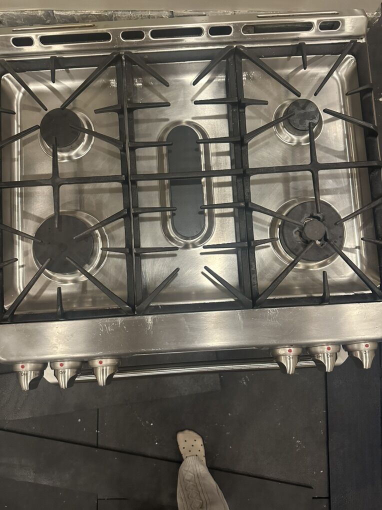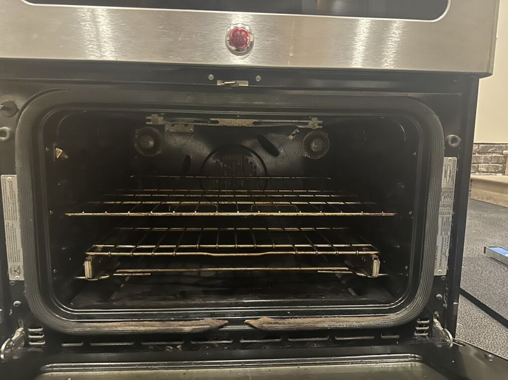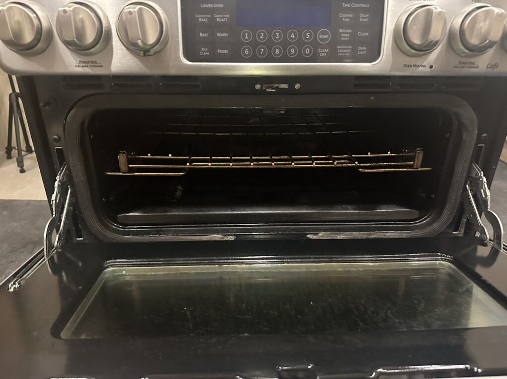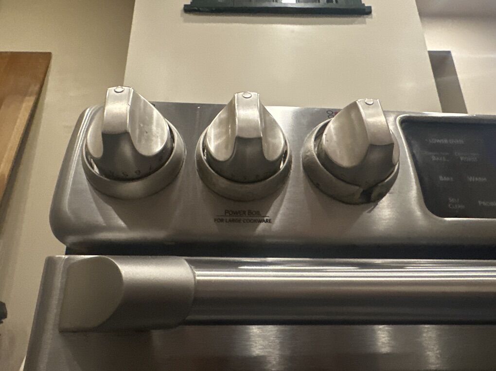 VenmoGE cafe slide in range. In awesome condition. It has been well loved. I took very good care of this oven. Everything works great. Under One knob there is a crack. See photo. Does not affect it. Not visible unless you are on the ground. 30inches.