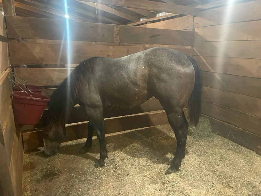 Excellent running bloodlines. Not broke due to injury as a 2 year old. Offered as breeding sound only. Dam and sire have produced money earners in barrel racing. Needs some more ground work but is halter broke (can be hard to catch), trailers, ties. Quite for a stallion. Great opportunity to add proven bloodlines and color to your program. Serious buyers only.