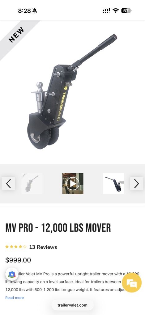 VenmoThe Trailer Valet MV Pro is a powerful upright trailer mover with a 12,000 lb towing capacity on a level surface, ideal for trailers between 8,000-12,000 lbs with 600-1,200 lbs tongue weight. It features an adjustable hitch ball base for height changes and a coupling plate to protect your coupler. With an automatic chain tensioner for smoother operation, it lets you maneuver your trailer by hand—even in tight spaces—offering precise, easy control without needing a vehicle or spotter.