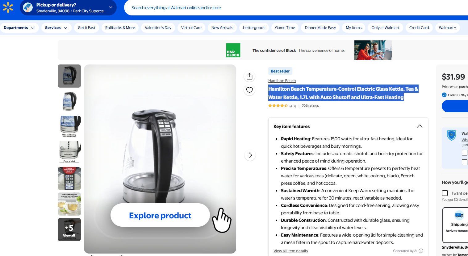 Hamilton beach temperature control electric glass kettle tea and water kettle 1.7L with auto shutoff and ultra fast heating