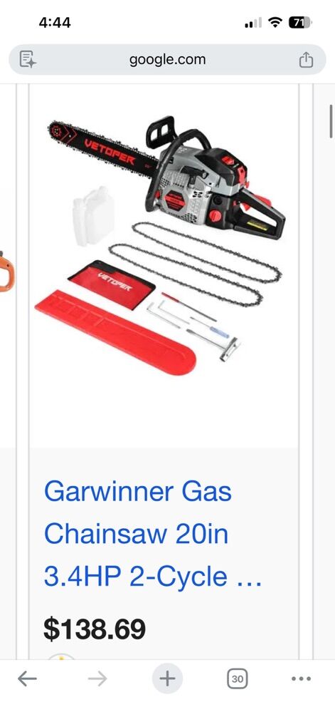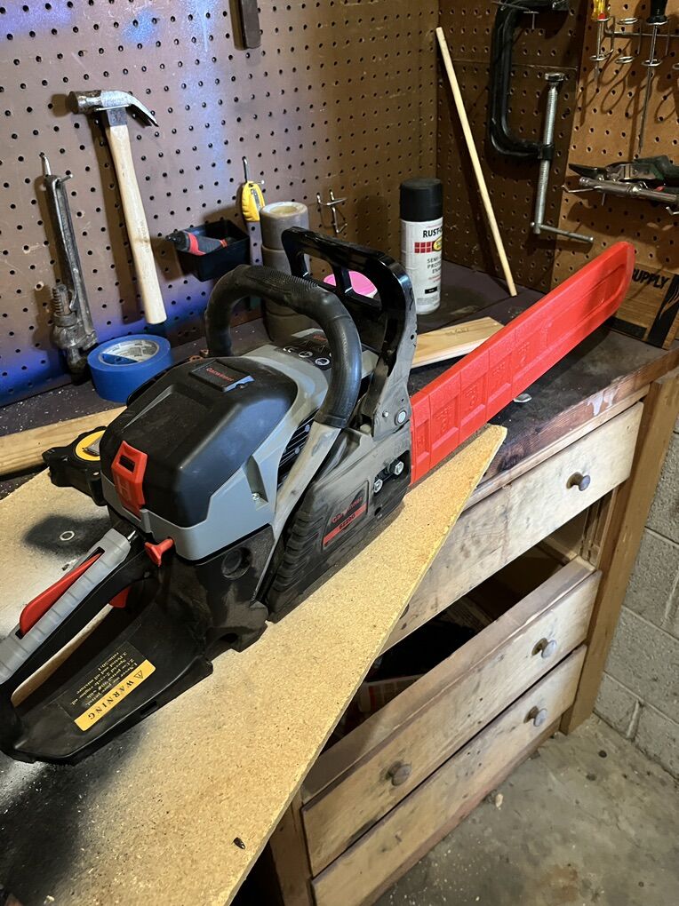 VenmoOnly used once to cut down a tree stump. Comes with oil mixing container. Chain cover and tool kit. As well as bar oil. I’ll clean it before giving it to you