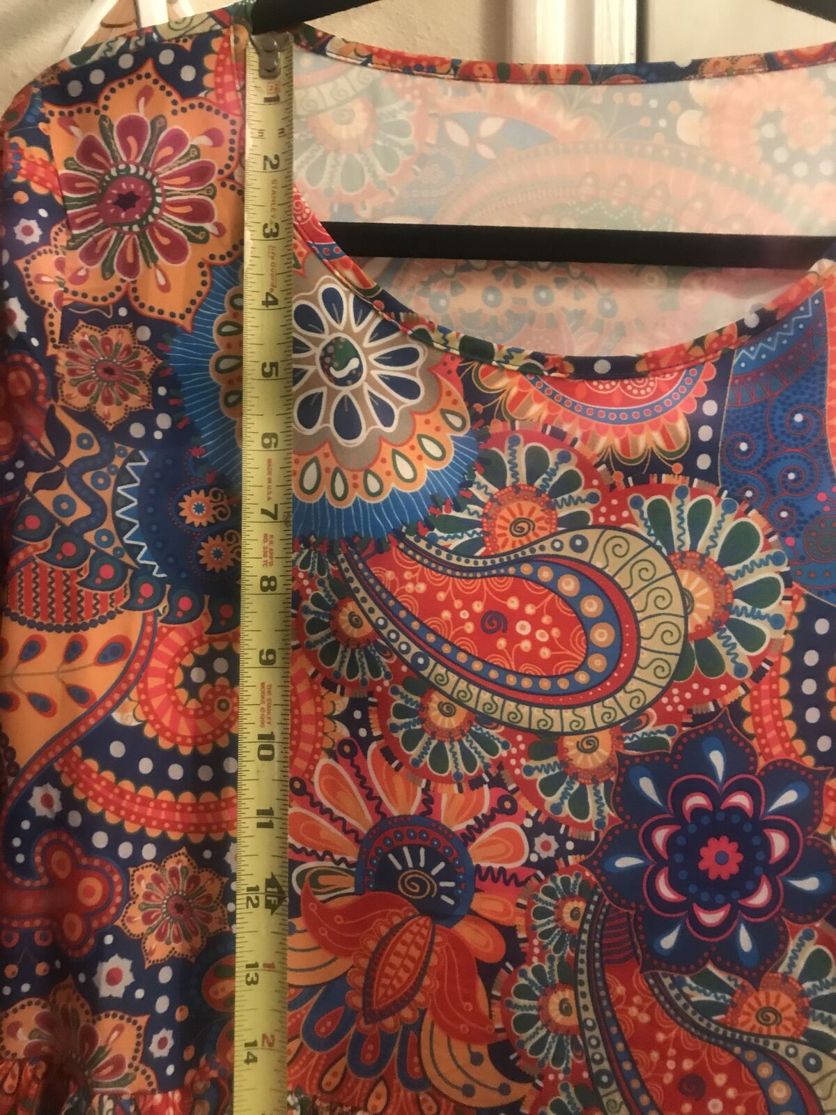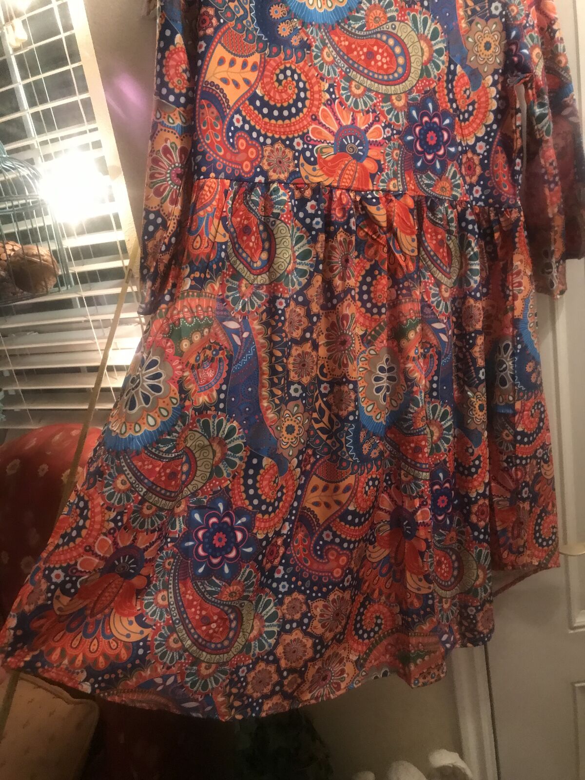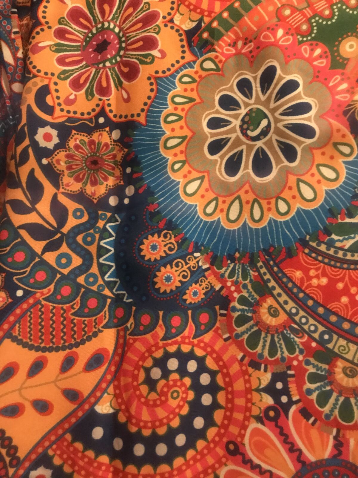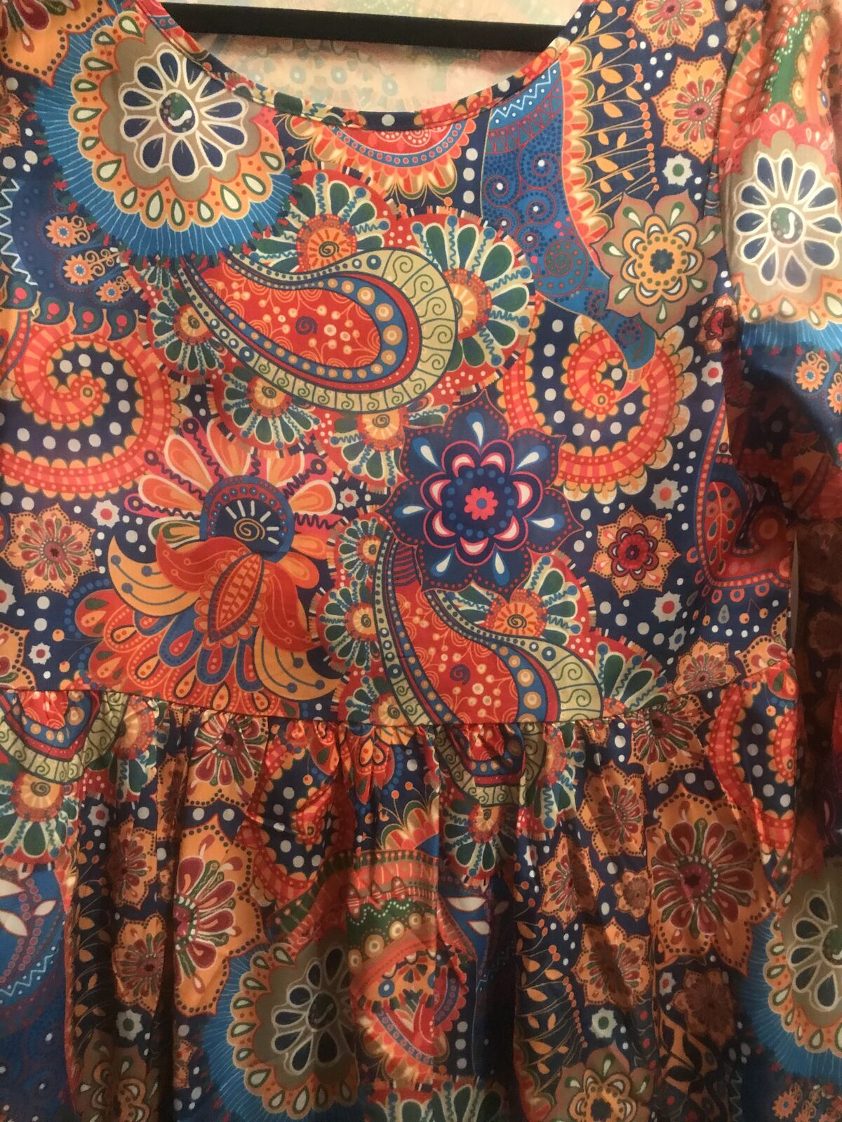 Very colorful Pasley Mandalay print dress to wear w Levi's. Never woren. Bought it online and it came in to big for me. :(( I love it but it is I'm guessing a size large. Measurements in the photos. I'm taking a loss but selling for $15.00. JayLo wears this style allot. A shorter dress with Levi's.Cute style for sure.