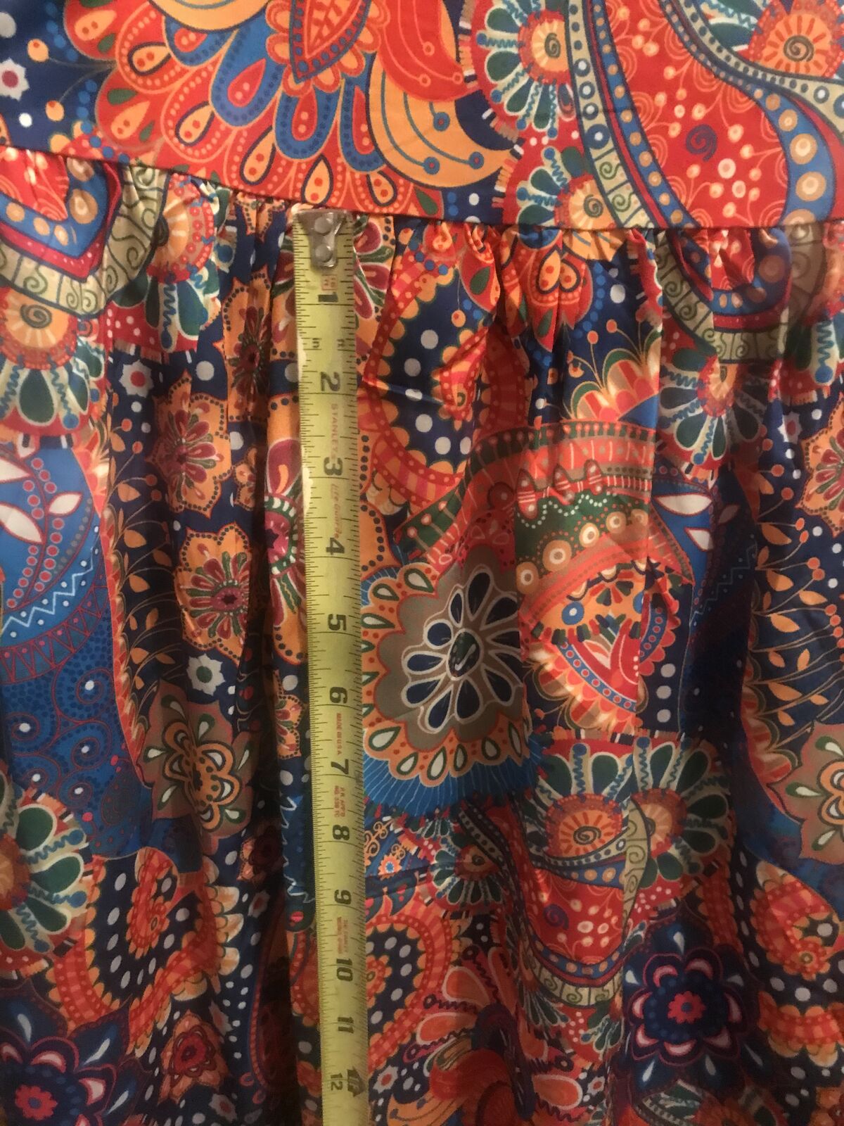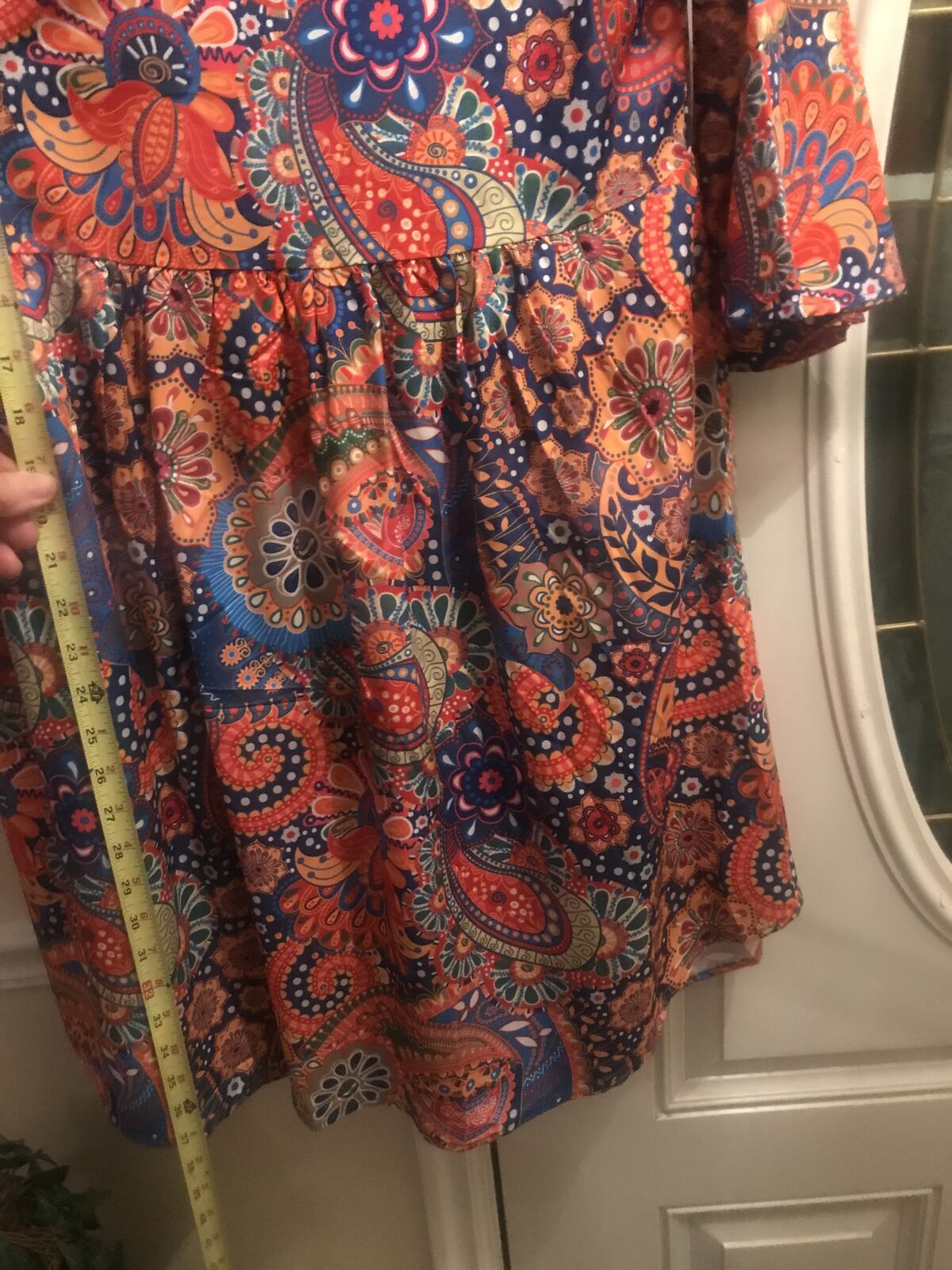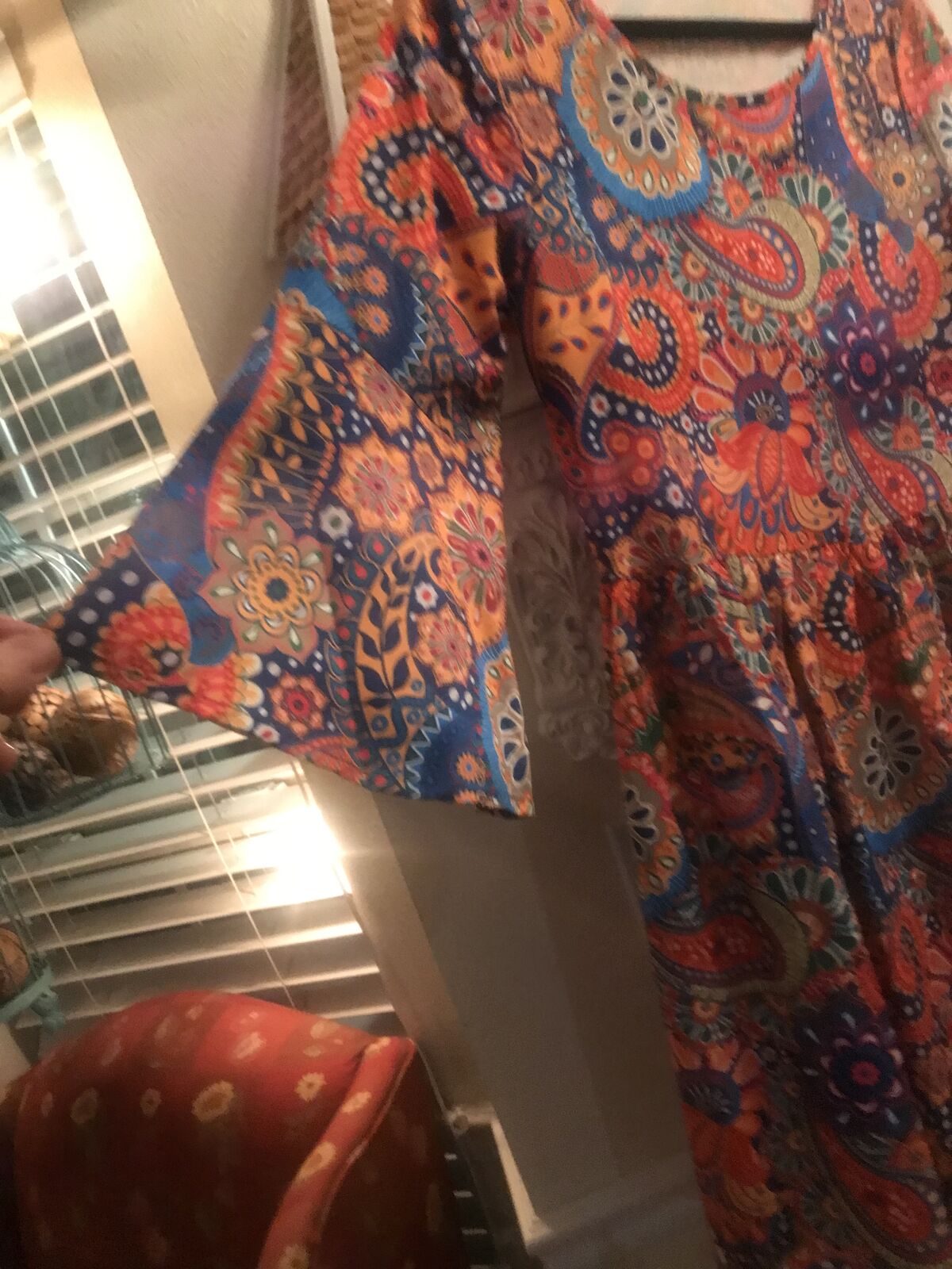 Very colorful Pasley Mandalay print dress to wear w Levi's. Never woren. Bought it online and it came in to big for me. :(( I love it but it is I'm guessing a size large. Measurements in the photos. I'm taking a loss but selling for $15.00. JayLo wears this style allot. A shorter dress with Levi's.Cute style for sure.