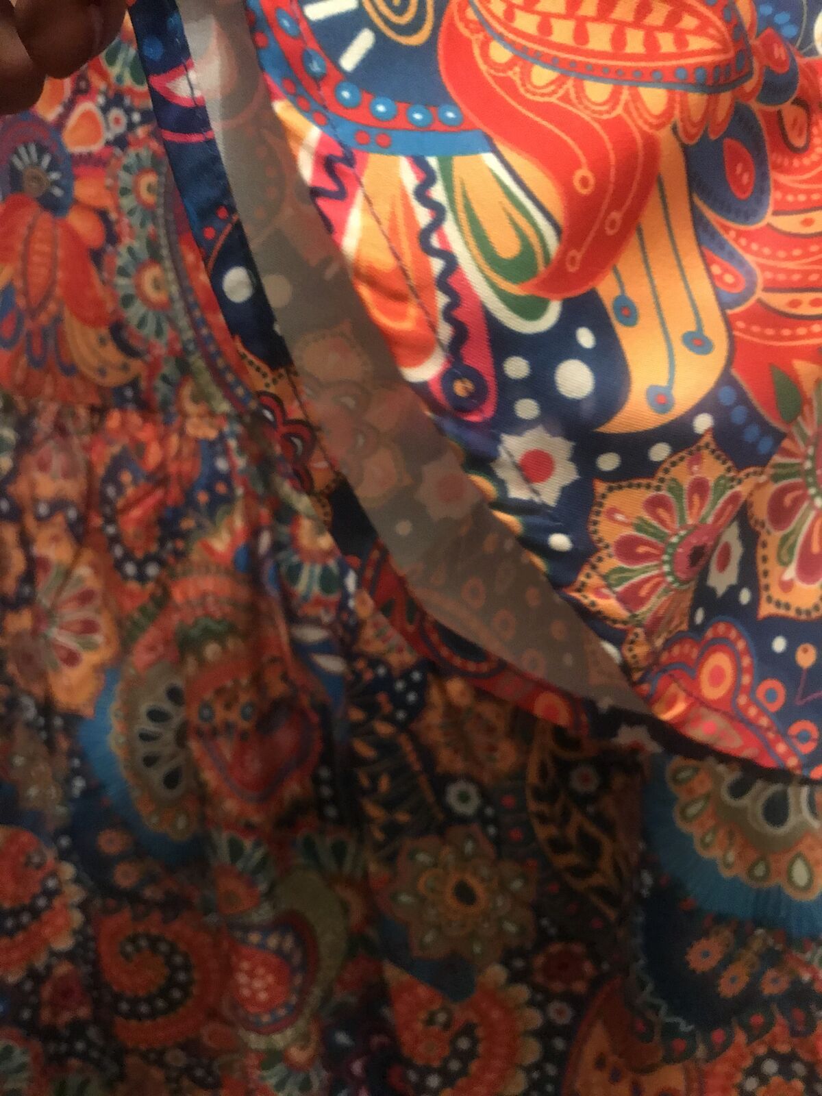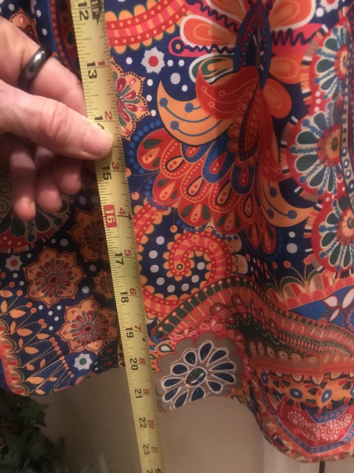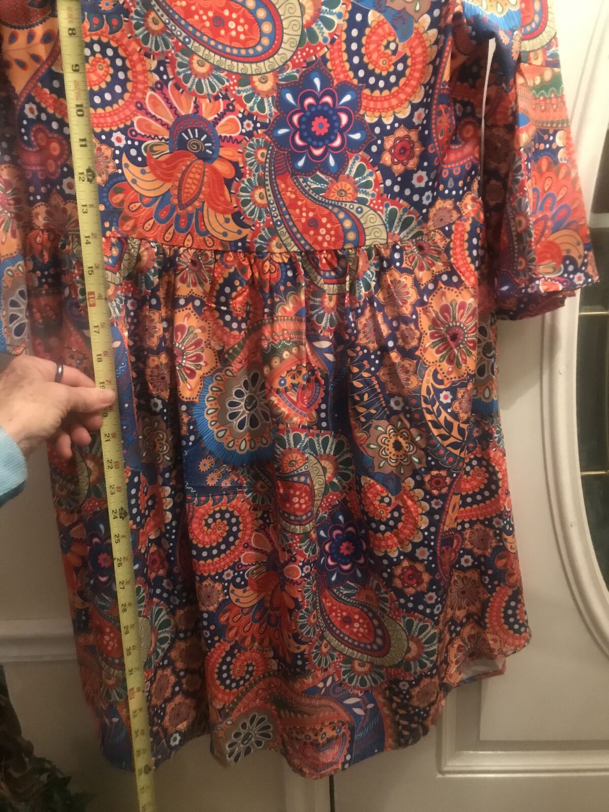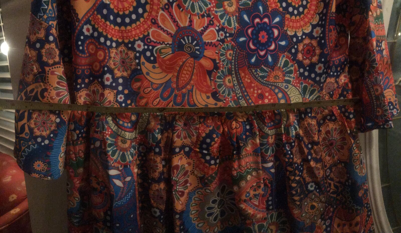 Very colorful Pasley Mandalay print dress to wear w Levi's. Never woren. Bought it online and it came in to big for me. :(( I love it but it is I'm guessing a size large. Measurements in the photos. I'm taking a loss but selling for $15.00. JayLo wears this style allot. A shorter dress with Levi's.Cute style for sure.