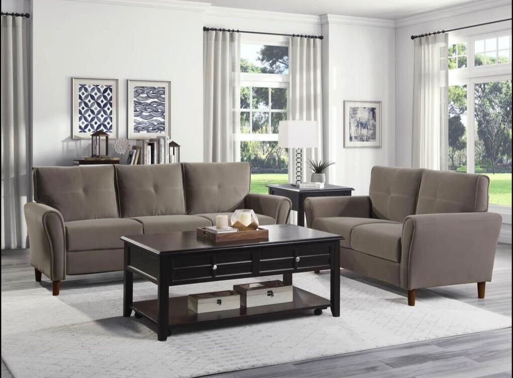 VenmoBrand New Sofa & Loveseat Set. $575 OBO - includes both pieces! Homelegance Brand. Typical retail price is $1,190. Dunleith Collection With a tailored look that is achieved with flared arms, clean lines, and a brown velvet cover, the sofa and love seat of the Dunleith Collection provide bold accent and soft touch to your living room's décor. The modern profile of the seating group supports plush seatbacks that are fronted with stich-tufting each design element lending to your ultimate comfort