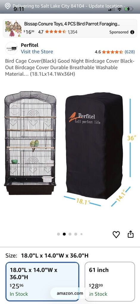 VenmoThis is a Perfitel bird cage cover in black. • It is made from durable, breathable, and nontoxic nylon twill shading fabric. • The cover can block more than 90% of sunlight and ultraviolet rays. • The front of the cover can be easily adjusted up and down to regulate light. • It is fade-resistant, machine washable, and tumble dryer safe.