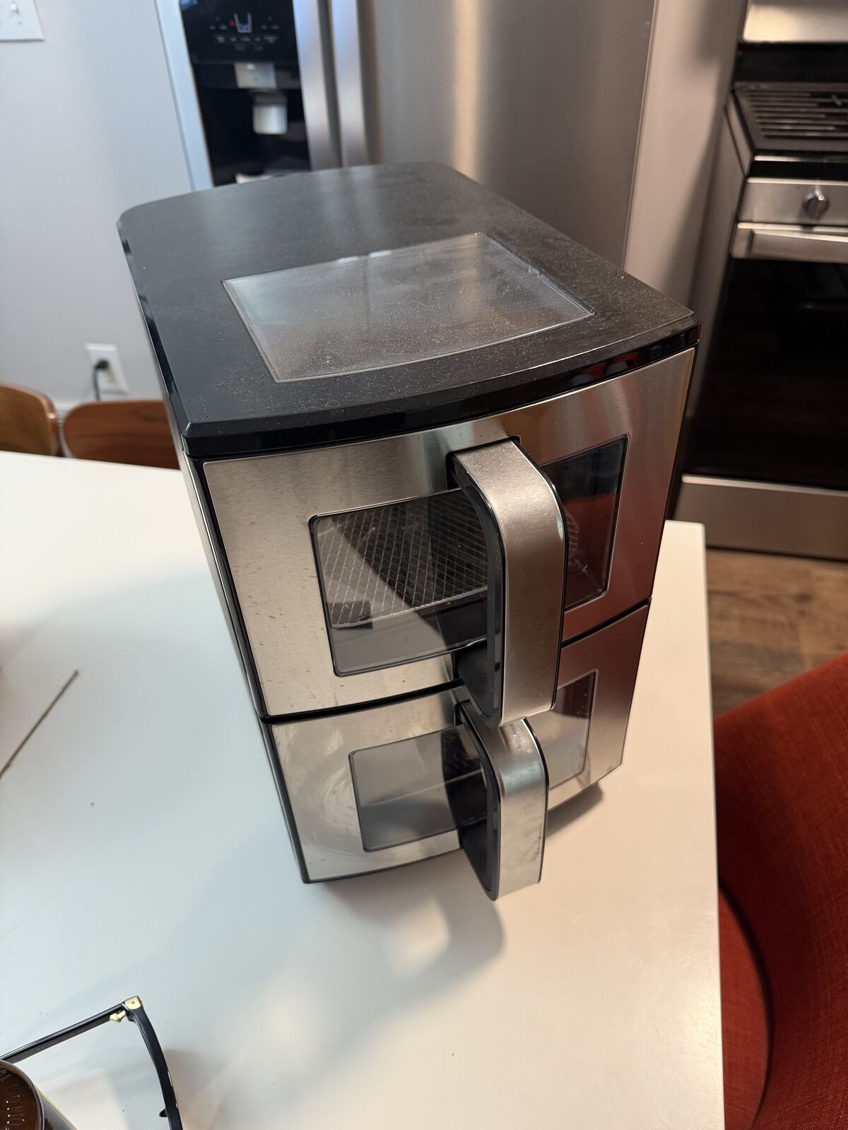 ApplePayDual level air fryer. Has inserts to do double levels in each drawer also. Controls keep each container in sync or can cook at different temps/times. Used only a few times.