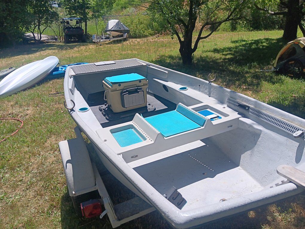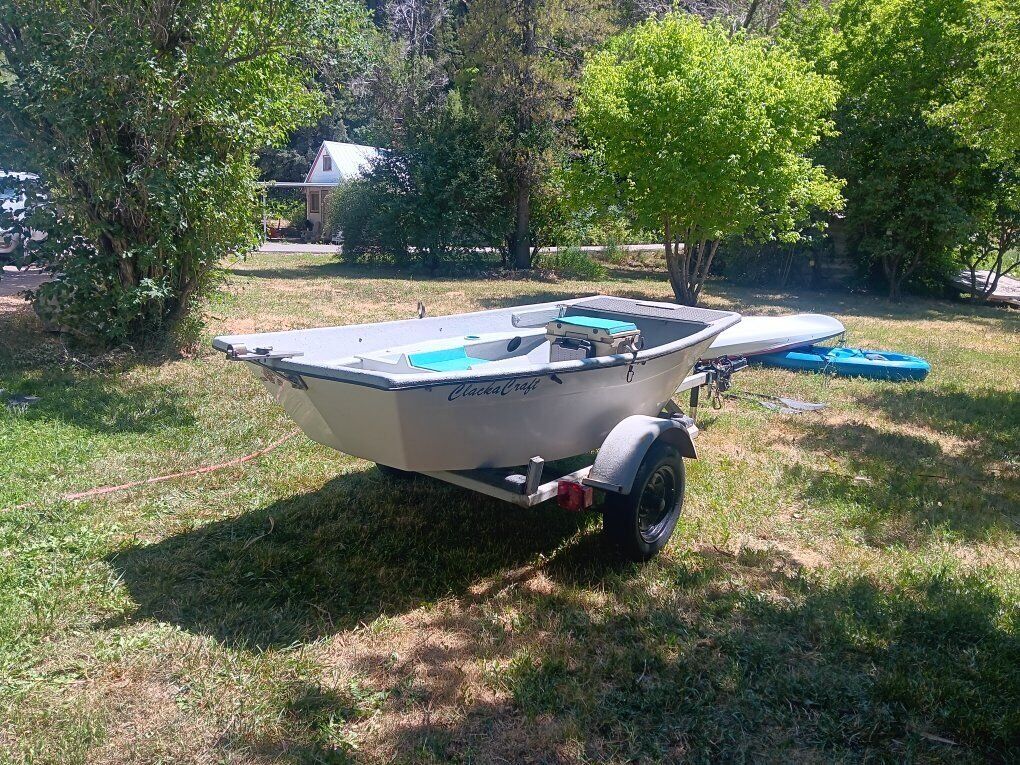 ZelleHard to find 12' Clacka Craft mini drifter. This boat is a blast for 2 people. It floats in very shallow water and will go places larger boats won't go. I have had a blast with this boat. It is great for fishing and hunting. Includes trailer that is a game changer and can be towed by any vehicle. I equipped it with a trolling motor mount last year. This boat is way easier to row than my 2 man pontoon. Includes front seat cooler that the previous owner installed. $2900 obo