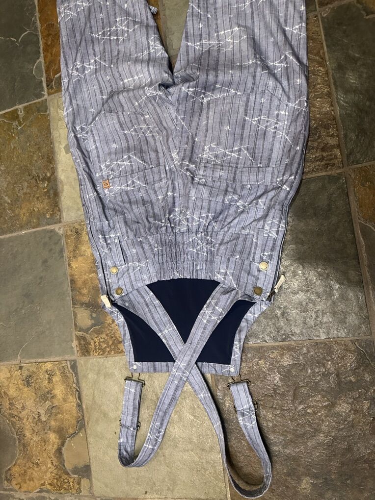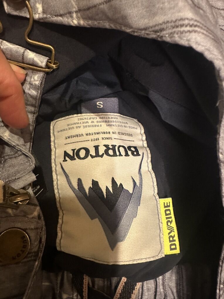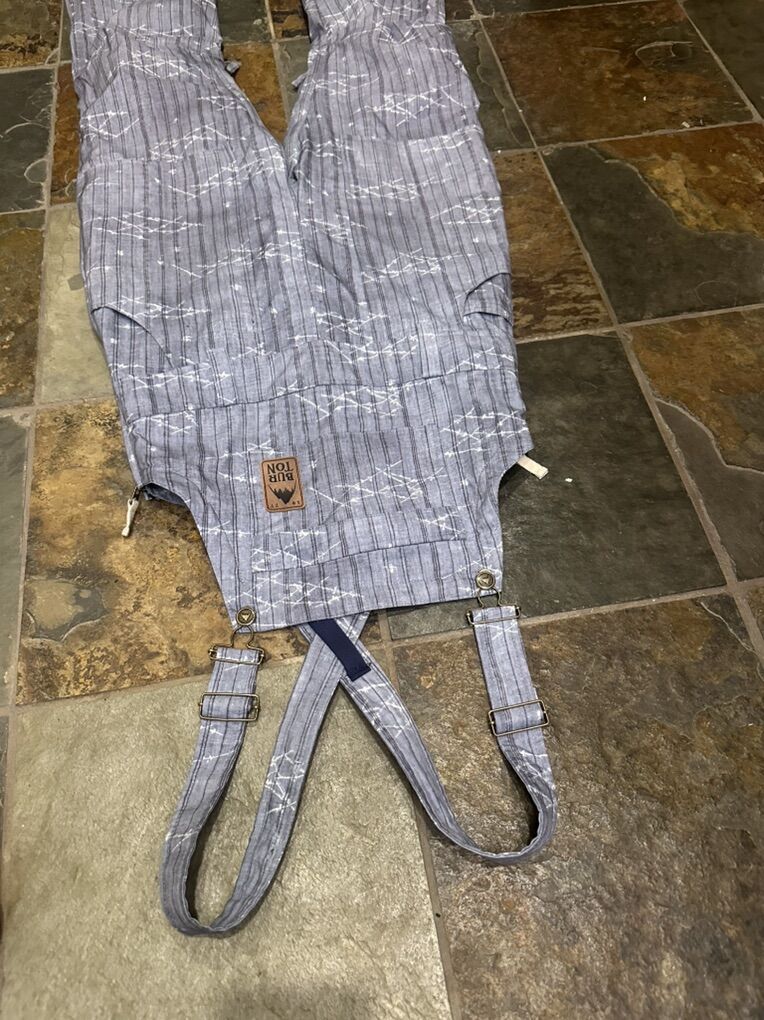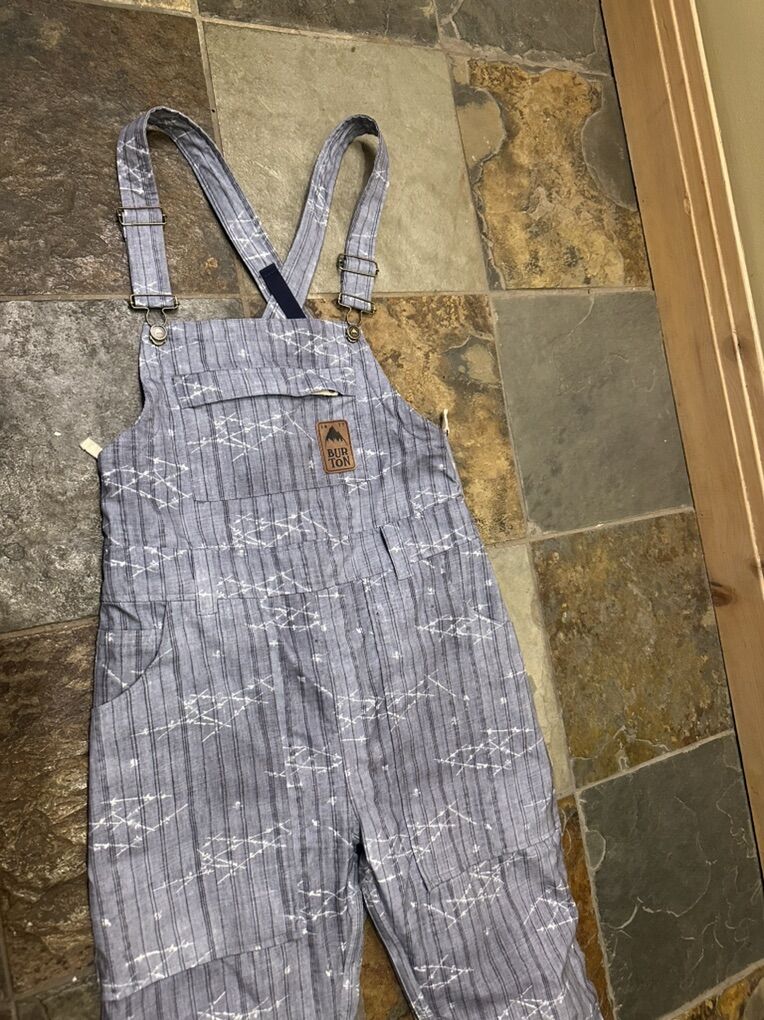 Burton women’s size S grey print overall snowboard pants. These are the dry ride technology. They’re in good condition except for a little rough on a couple spots on the hem. See photos for details. I take cash or Venmo, but cash is preferred. Text is best. 801-201-4446. Check out my other ads for additional sizes and styles.