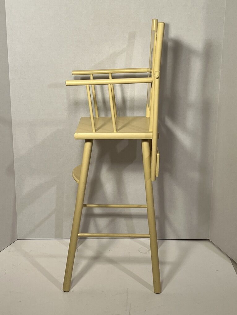 VenmoAll wood, painted yellow. Seat is about 7”x 7”