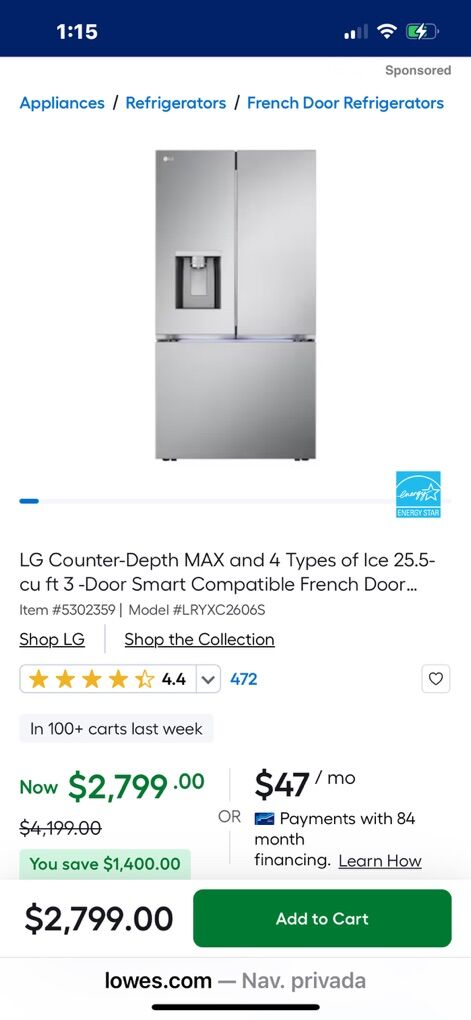 ApplePayIm selling NEW COUTURE DEPTH LG REFRIGERATOR CRAFT ICE MAKER STAINLESS STEEL, everything works perfectly conditions, 35”3/4 inch wide and 68”3/4 inch tall 27” depth, for more information please call or text Johnny delivery available.