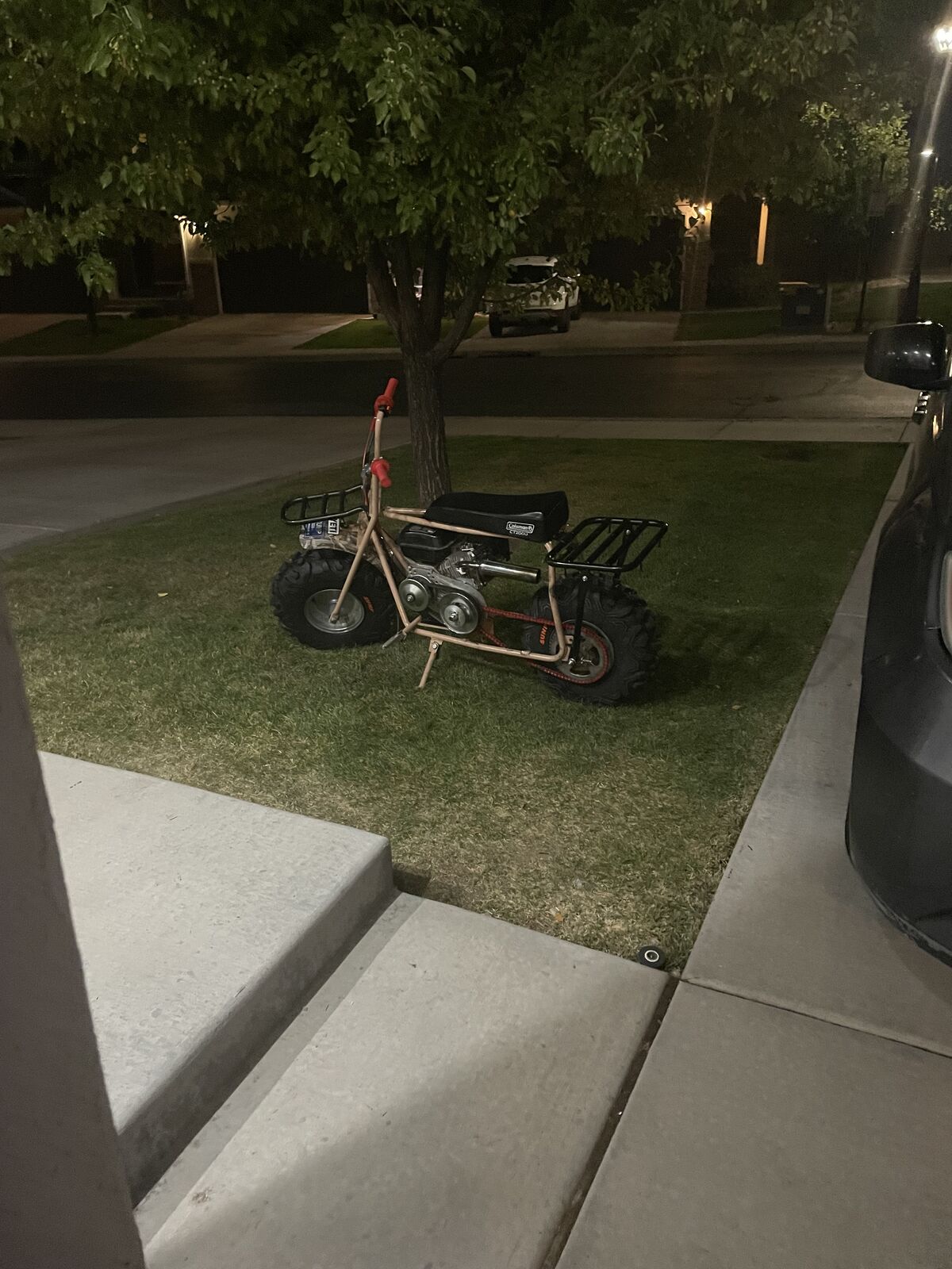 VenmoHOLLY SHIT THIS BIKE RIPS, this is a coleman predator 224cc and it used to have a predator 212cc but i had just enough room to squeeze a 224cc in it the top speed on this is 55mph, i have brand new engin, tourqe converte, throttle asembly, brand new tire, chain, and a new straight pip on it. i also have a smaller sprocket that is also brand new, if you put on the new sprocke the top speed will be 62-64mph due to gear ratio. but this bike is re fun to ride and handles well text me and i can also send mor videos of it running and video of me riding it.