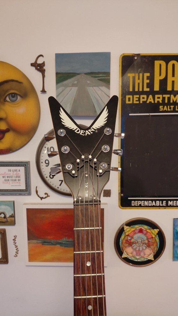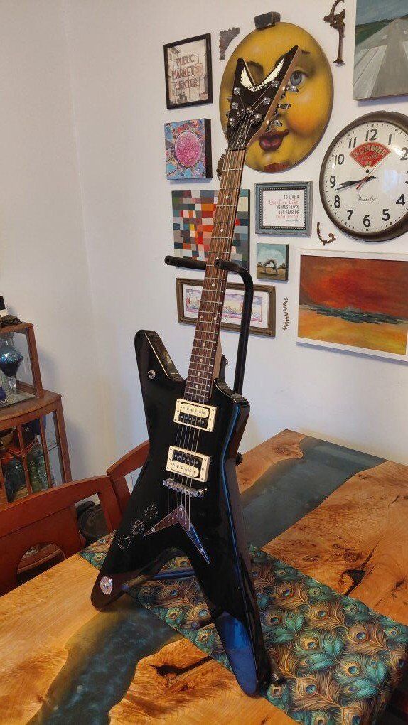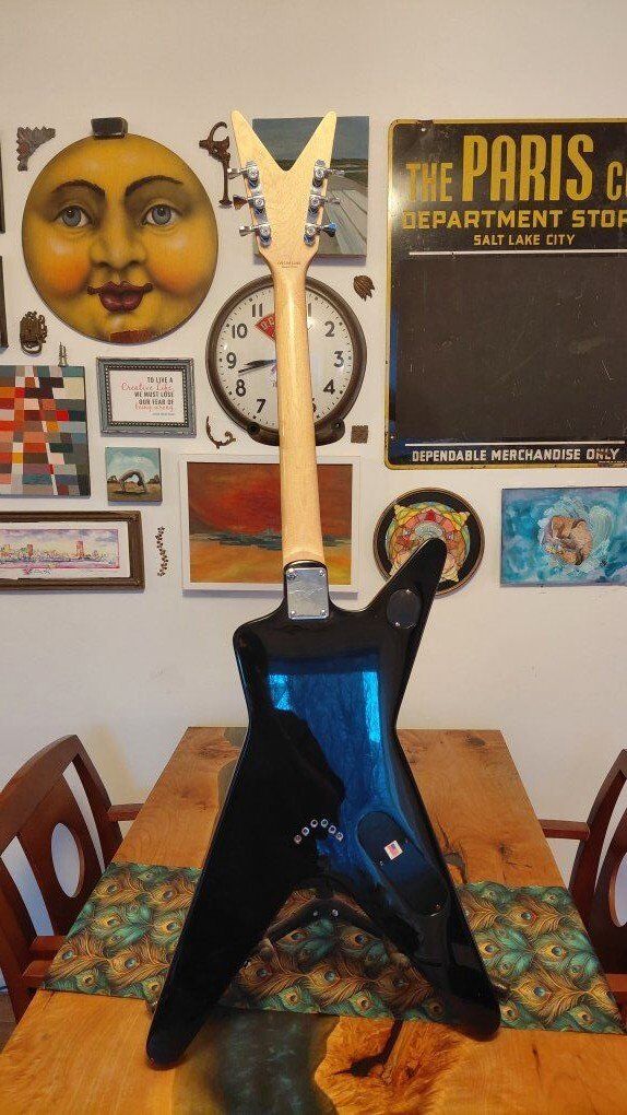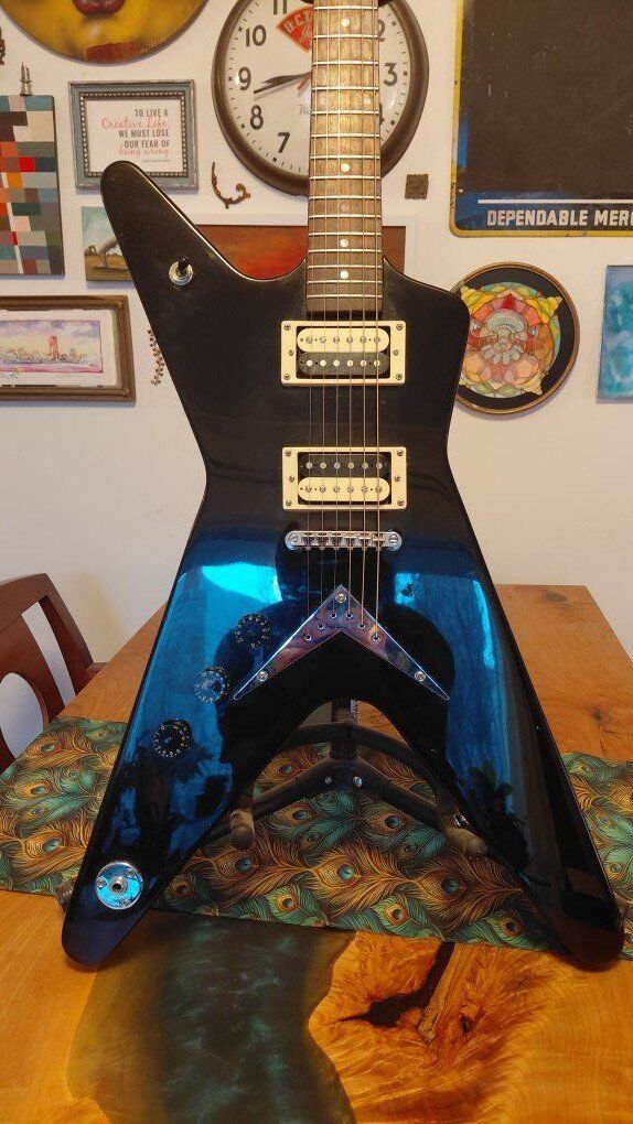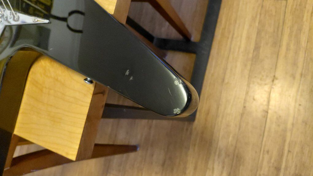 A classic shape with some modifications to make this a trusty workhorse gig instrument. Some decent size dings and chips in places expected for a shape like this and a glue stain on the fretboard under the nut (does not effect playability). Otherwise in very great condition. I installed Hipshot locking tuners and a String Butler to improve tuning stability. Also put in a Graphtech nut. Plays a lot better than before. Asking $250 OBO. Has been cleaned and conditioned with new strings put on. Can do cash or Venmo.
