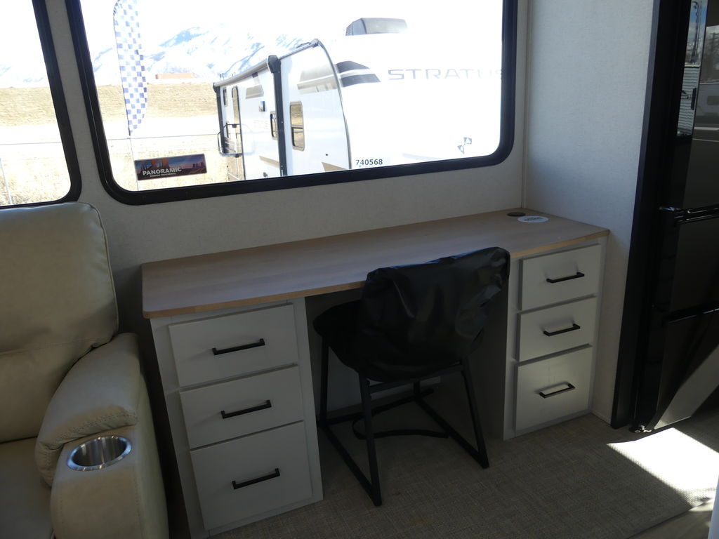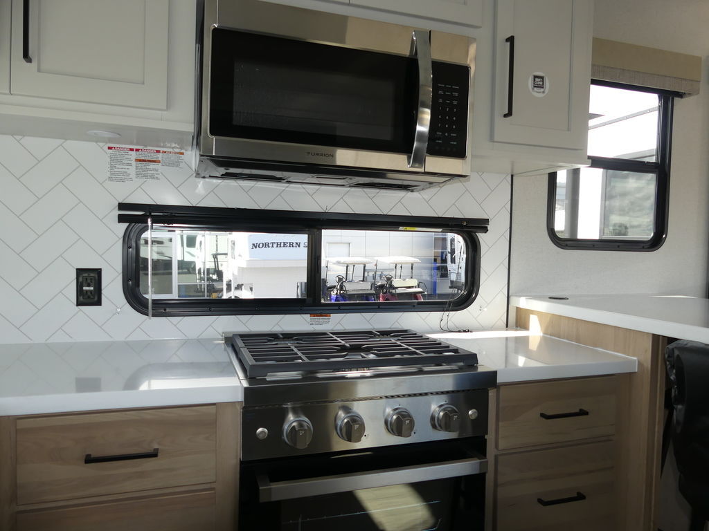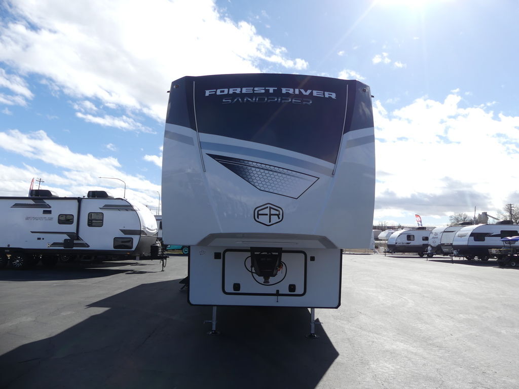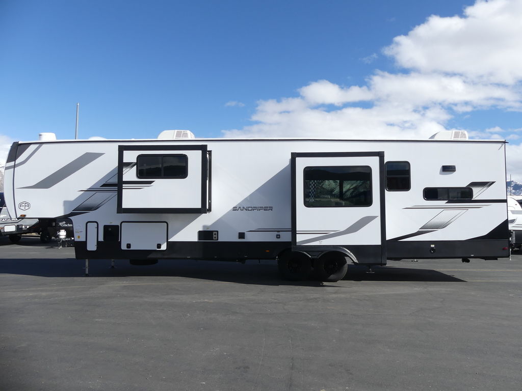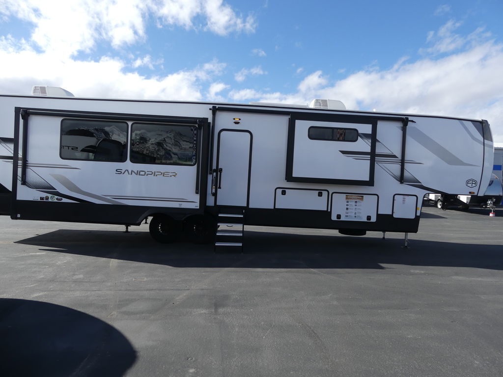 Wherever you go, the Sandpiper line up will ensure you make the most out of every adventure. Unique floorplan designs like bunkhouses, front living spaces, or mid-bunk/offices will accommodate any traveler or group. Automatic level up, 16.8 french door refrigerator, and underbelly armor combine to create a perfect balance of size, space, features and luxury.