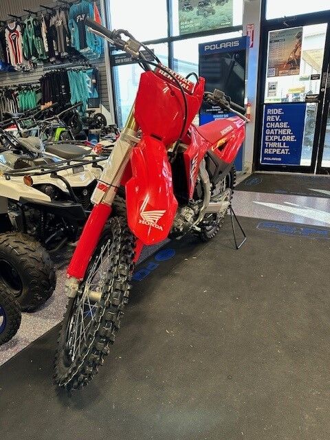 $750 REBATE Engine Type: Single-Cylinder Displacement: 27.4 cu. in. (449.8 cc) Bore and Stroke: Bore: 3.78 in. (96 mm); Stroke: 2.45 in. (62.1 mm) Cooling: Liquid Compression Ratio: 13.5:1 Fuel System: Gas Front Suspension: Inverted Fork Front Brakes: Disc Front Tire: Dunlop® Geomax MX33: 80/100-21 Rear Suspension: Twin Sided Swing Arm Rear Brakes: Disc Rear Tire: Dunlop® Geomax MX33: 120/80-19 Fuel Capacity: 1.7 gal. (6.4 L) Wheelbase: 58.3 in. (1480.8 mm) Ground Clearance: 13 in. (330.2 mm) Seat Height: 37.8 in. (960 mm) Trail: 4.5 in. (114 mm) Rake: 27.3 Transmission: Manual