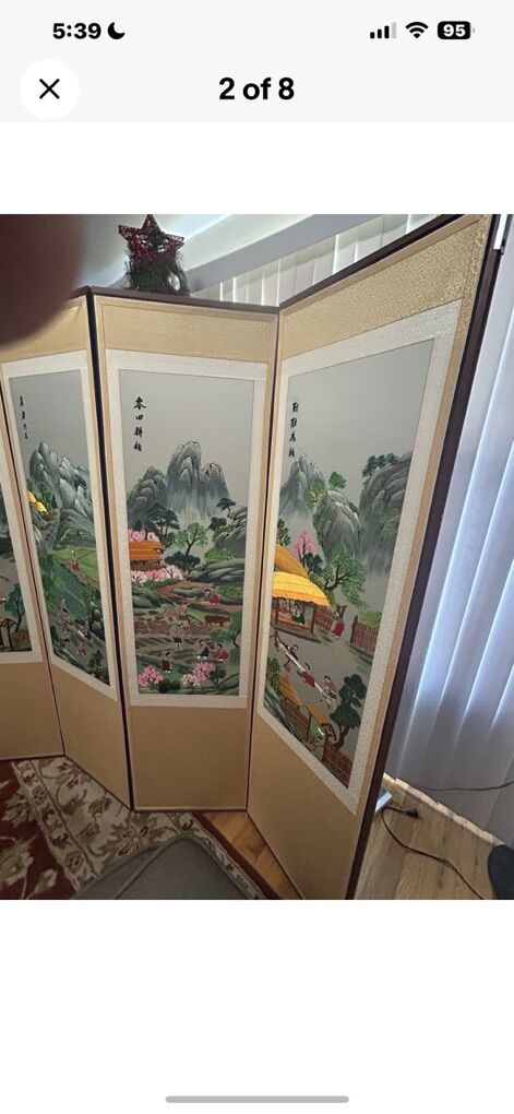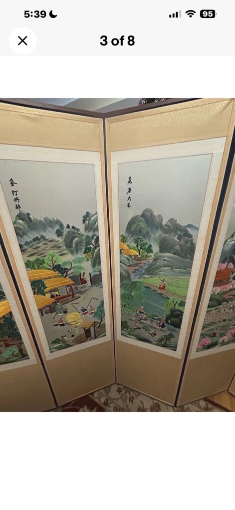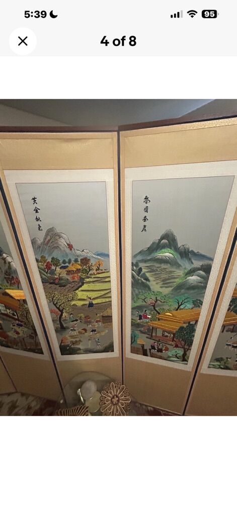 VenmoVintage Asian Chinese Korean Silk Embroidery Eight Panel Privacy Screen Signed, great condition with bamboo frame. Price dropped for a quick sale!!!