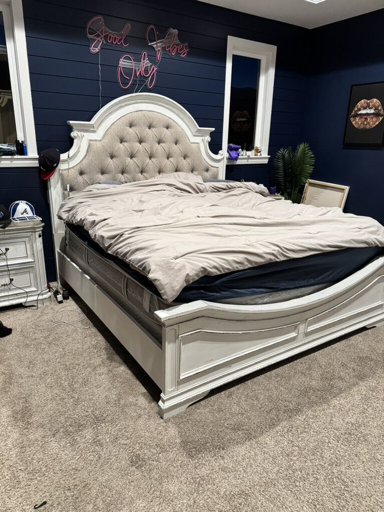VenmoThis rustic bed frame is sturdy and in good condition If you need box springs we are selling two for $50 each! (Price is set and non negotiable, and nightstands not for sale) Headboard measurements: Width : 77 in Height: (from the top to floor) about 6 ft