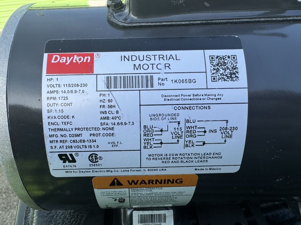 ApplePayDAYTON General Purpose Motor: Single Phase, 1 hp, 115/208-230V AC, 56H Frame Size, 5/8 in x 1 7/8 in